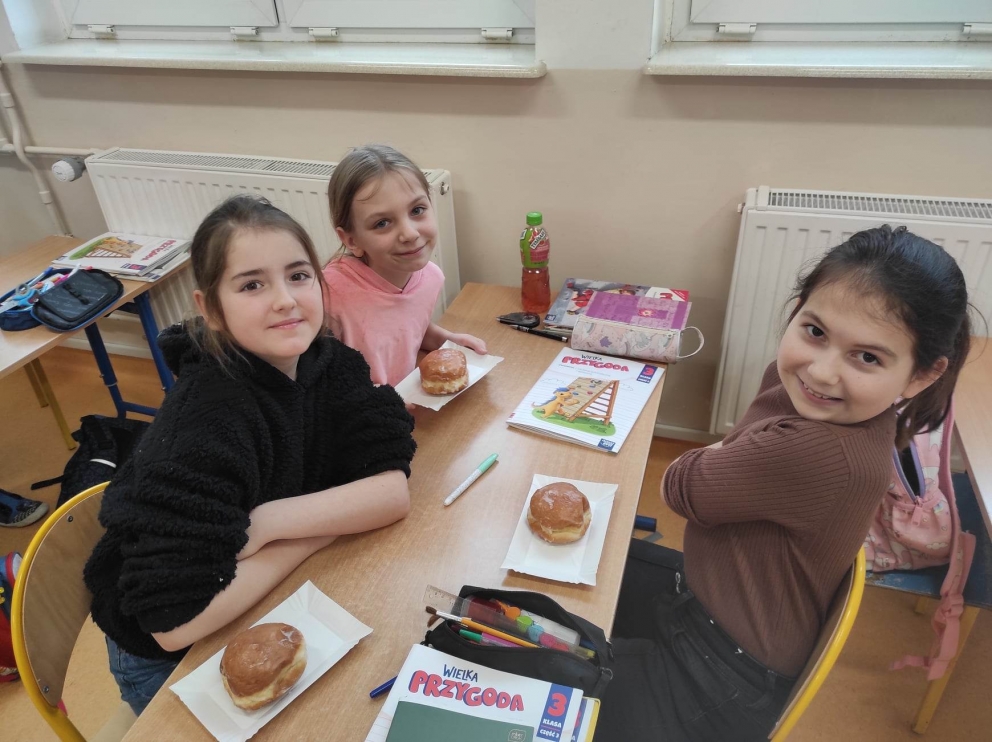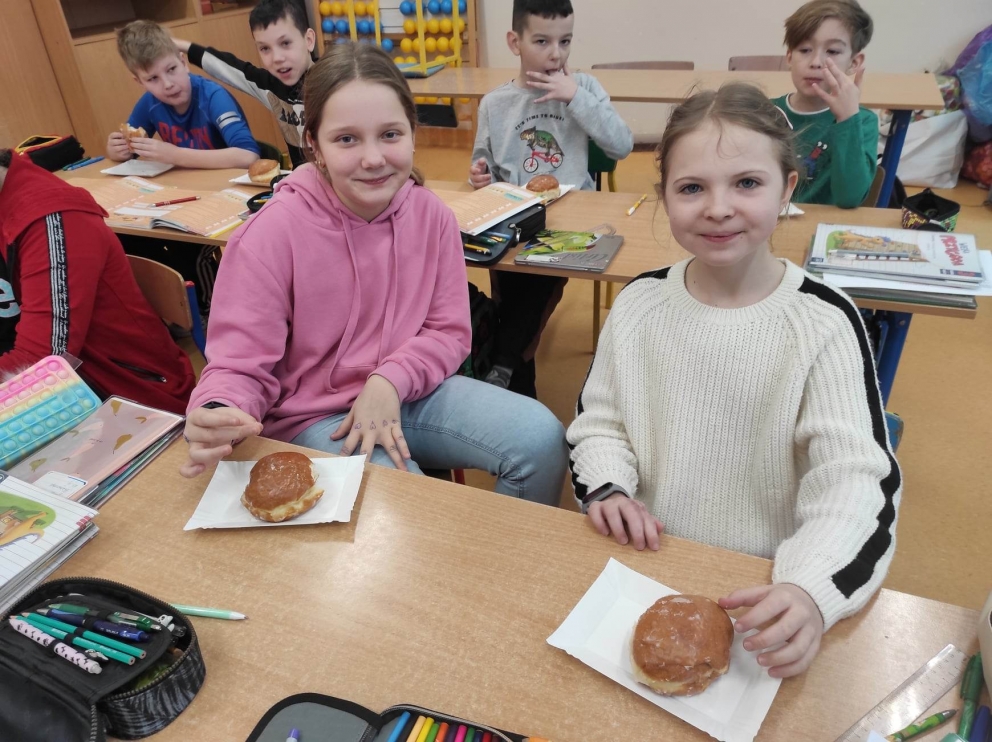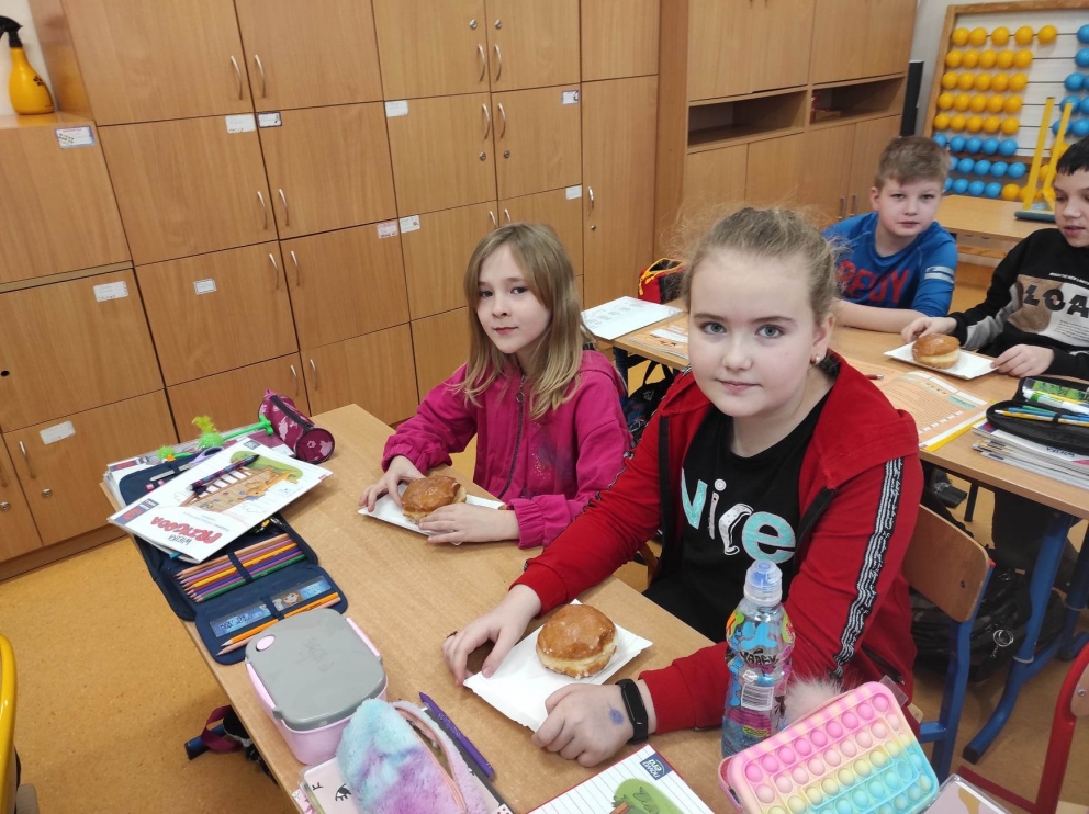 W naszej szkole jak zwykle tłusty czwartek minął na słodko z pysznymi, lukrowanymi pączkami z konfiturą i czekoladą. W imieniu dyrekcji, wszystkich nauczycieli, pracowników naszej szkoły oraz uczniów pragniemy serdecznie podziękować  Radzie Rodziców za przygotowanie przepysznych pączków. Dzięki Wam wszyscy w szkole obchodziliśmy tłusty czwartek zgodnie z tradycją, kosztując rozpływających się w ustach pączków, które błyskawicznie znikały z naszych talerzyków. Uśmiechy na naszych twarzach są dowodem na to, jak wiele sprawiłyście nam  radości. Dziękujemy!!!