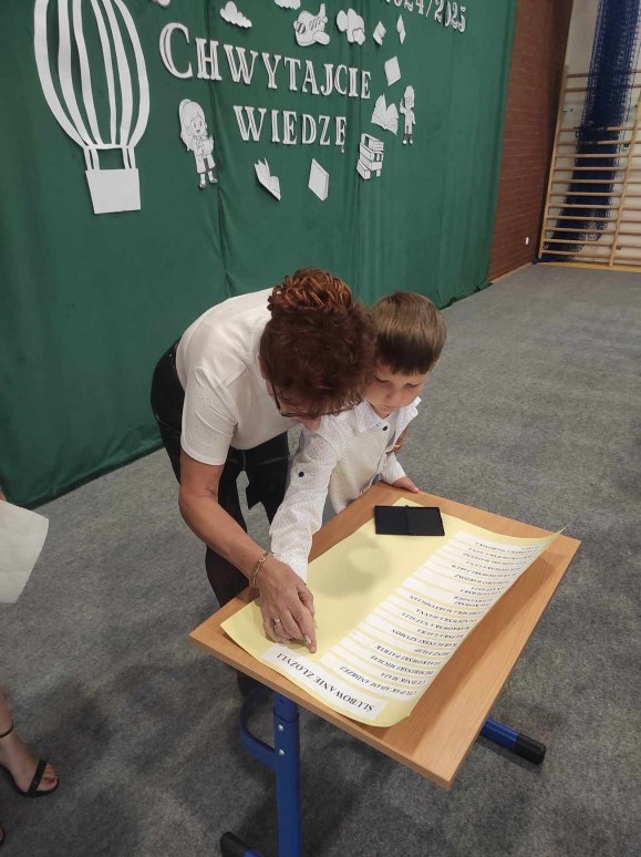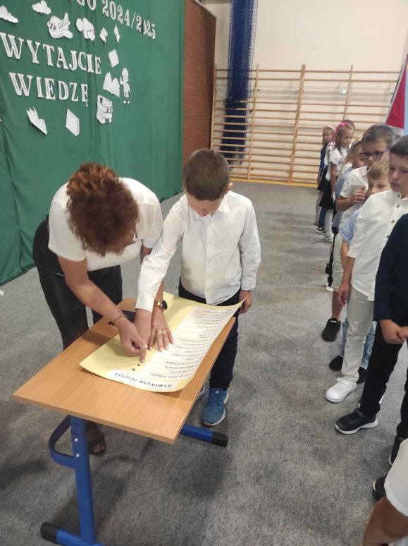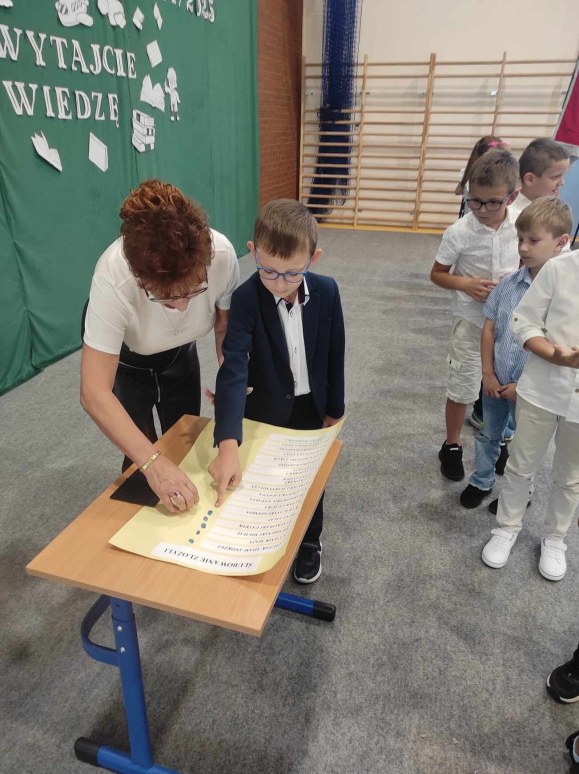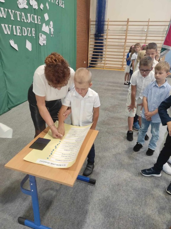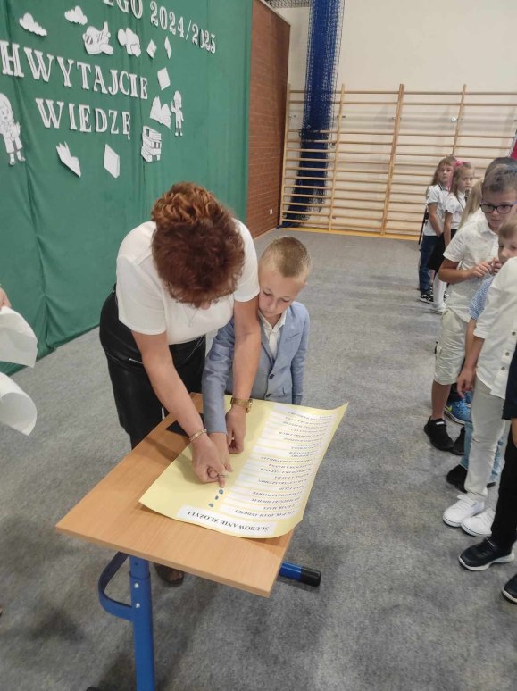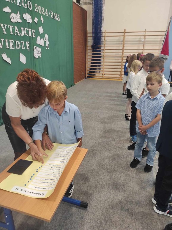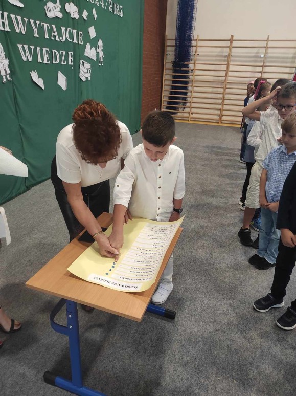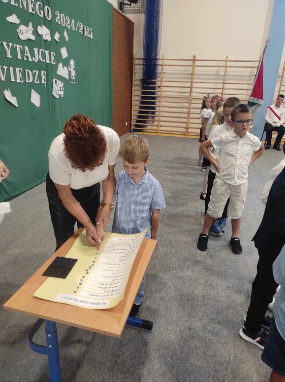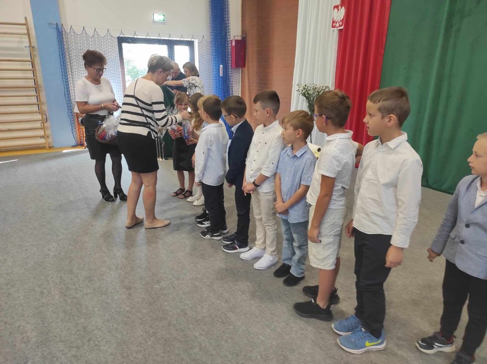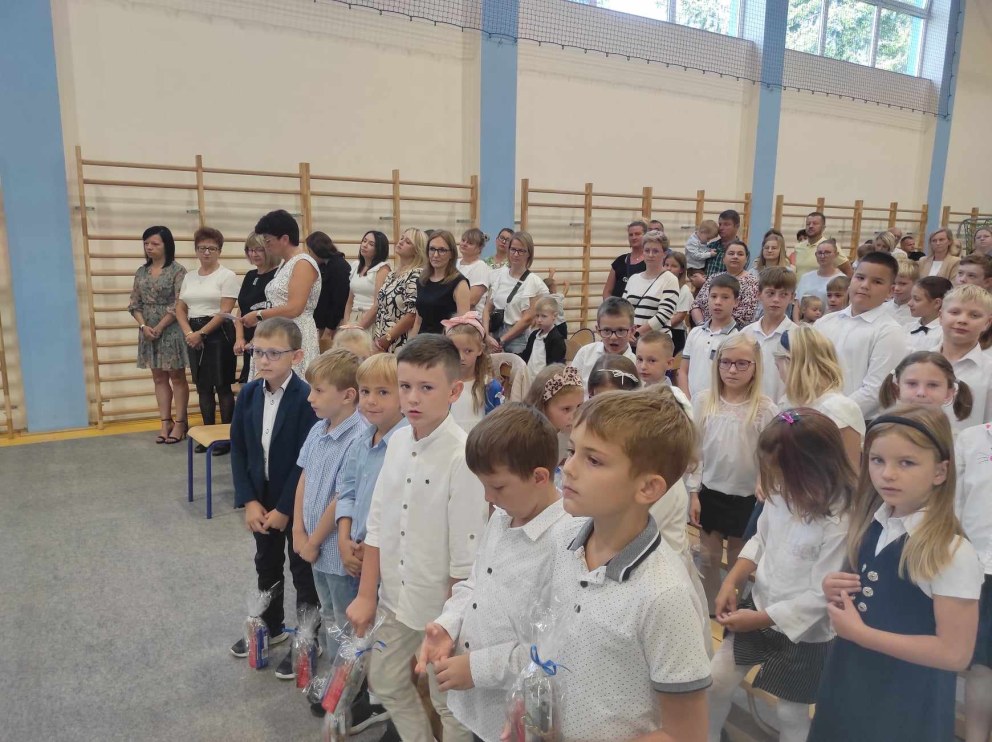 Nowy rok szkolny 2024/2025 rozpoczęliśmy uroczystą mszą świętą, którą odprawił w kościele parafialnym ks. Andrzej Waks. Po zakończeniu uroczystości kościelnych uczniowie wraz z rodzicami udali się do szkoły gdzie głos zabrała Dyrektor Szkoły Pani Bożena Grela. Serdecznie powitała zgromadzonych gości, wśród których znaleźli się: sołtys wsi Drużyny pan Tadeusz Krzepicki, sołtys wsi Budy pan Adam Kalwa, sołtys wsi Kruszyny Szl. pan Przemysław Małkiewicz, sołtys wsi Grzybno pan Kazimierz Hurtak, radny wsi Grzybno pan Konstanty Jamroży oraz Wiceprzewodniczący Rady Gminy Bobrowo pan Roman Węgrzynowski. Ponadto powitała rodziców, opiekunów prawnych, sympatyków szkoły, uczniów, pracowników administracji i nauczycieli. Następnie odczytała list od Wójta Gminy Bobrowo Pana Pawła Klonowskiego. Podczas uroczystego apelu pani dyrektor pogratulowała nauczycielom, którzy podczas wakacji zdobyli kolejny stopień awansu zawodowego. Pani Zuzanna Złocka-Pilawa oraz pani Iwona Potajczuk uzyskały tytuł nauczyciela mianowanego. Następnie dokonała pasowania uczniów klasy I. Pierwszoklasiści otrzymali drobne upominki ufundowane przez Radę Rodziców. Po uroczystości uczniowie spotkali się z wychowawcami w salach lekcyjnych, gdzie wysłuchali ważnych informacji dotyczących organizacji pracy w nowym roku szkolnym.