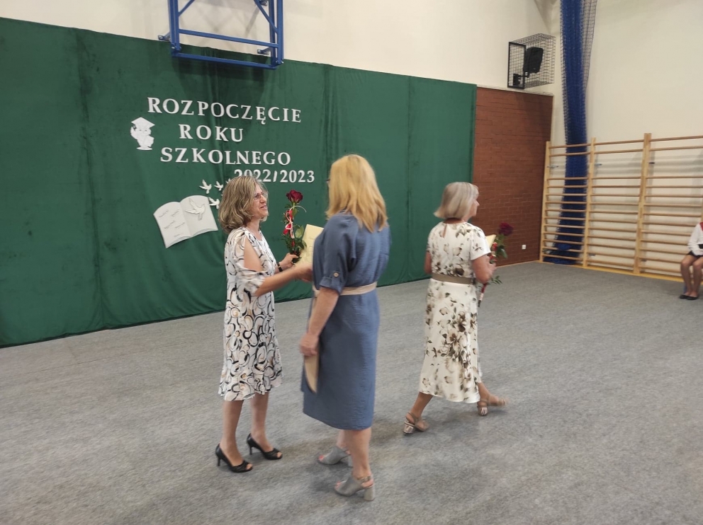 Nowy rok szkolny 2022/2023 rozpoczęliśmy uroczystą mszą świętą, którą odprawił w tutejszym kościele proboszcz ks. Andrzej Waks.  Po zakończeniu uroczystości kościelnych uczniowie wraz z rodzicami udali się do szkoły gdzie głos zabrała powołana na stanowisko dyrektora szkoły Pani Bożena Grela. Serdecznie powitała zgromadzonych gości, wśród których znaleźli się: Wójt Gminy Bobrowo Pan Paweł Klonowski, pani Bernadeta Krasucka, sołtys wsi Drużyny pan Tadeusz Krzepicki, sołtys wsi Grzybno pan Kazimierz Hurtak, radny od spraw oświaty pan Władysław Szulc. Ponadto powitała rodziców, opiekunów prawnych, sympatyków szkoły, uczniów, pracowników administracji i nauczycieli. Podczas uroczystego apelu pani dyrektor pogratulowała nauczycielom, którzy podczas wakacji  zdobyli kolejny stopień awansu zawodowego. Pani Dominika Małkiewicz oraz pan Paweł Budzyński uzyskali stopień nauczyciela dyplomowanego. Ponadto na ręce pani Jolanty Rychtarskiej i pani Grażyny Obremskiej złożyła kwiaty w podziękowaniu za 40 letni staż pracy. Później głos zabrała dotychczasowa dyrektor szkoły pani Kamila Sobiech, która podziękowała gronu pedagogicznemu i rodzicom za współpracę. Następnie Wójt Gminy Bobrowo Pan Paweł Klonowski, nauczyciele i przedstawiciele Rady Rodziców złożyli pani Kamili Sobiech serdeczne podziękowania za pracę na rzecz szkoły. Ostatnim punktem uroczystości było spotkanie uczniów z wychowawcami.