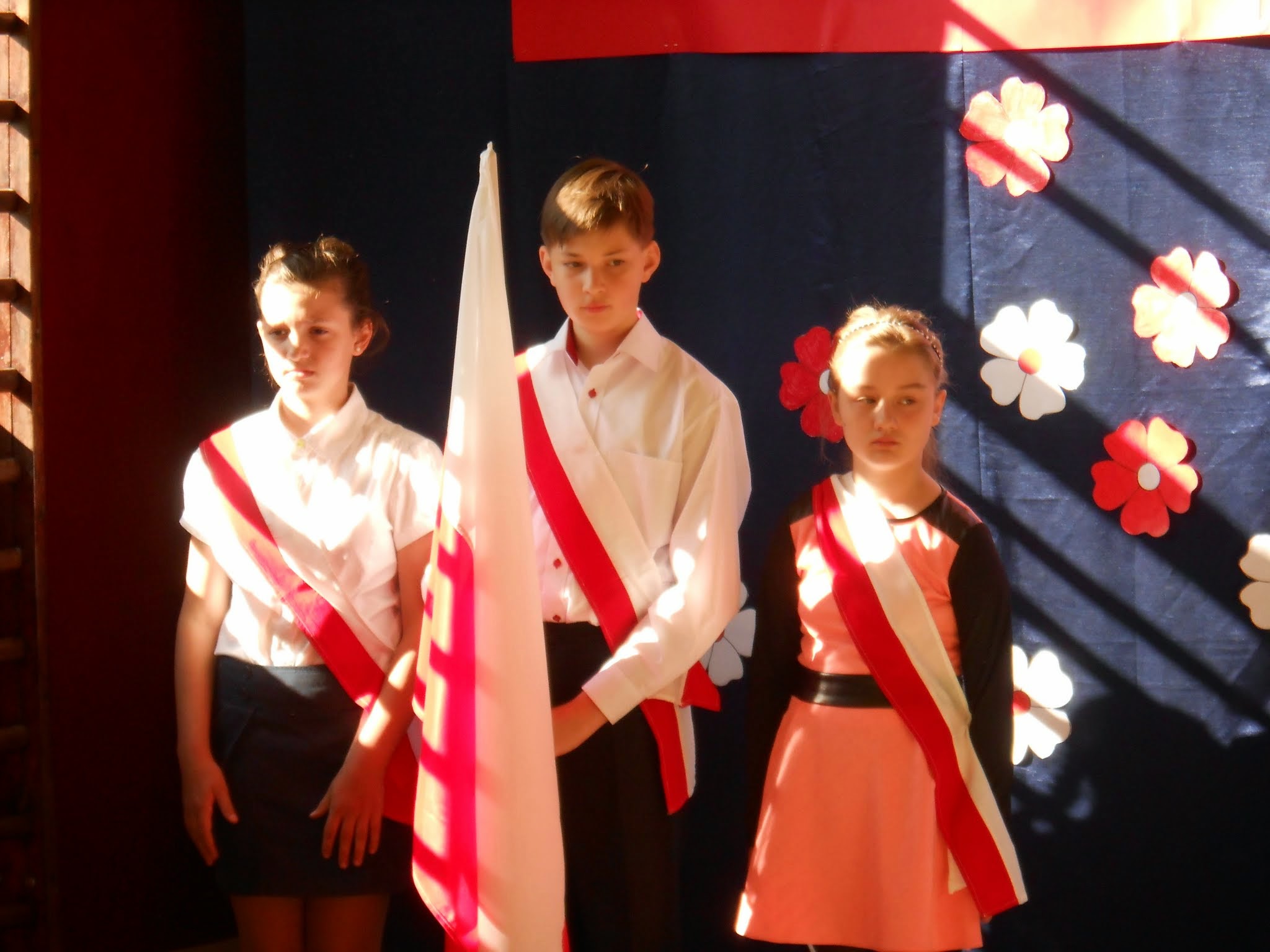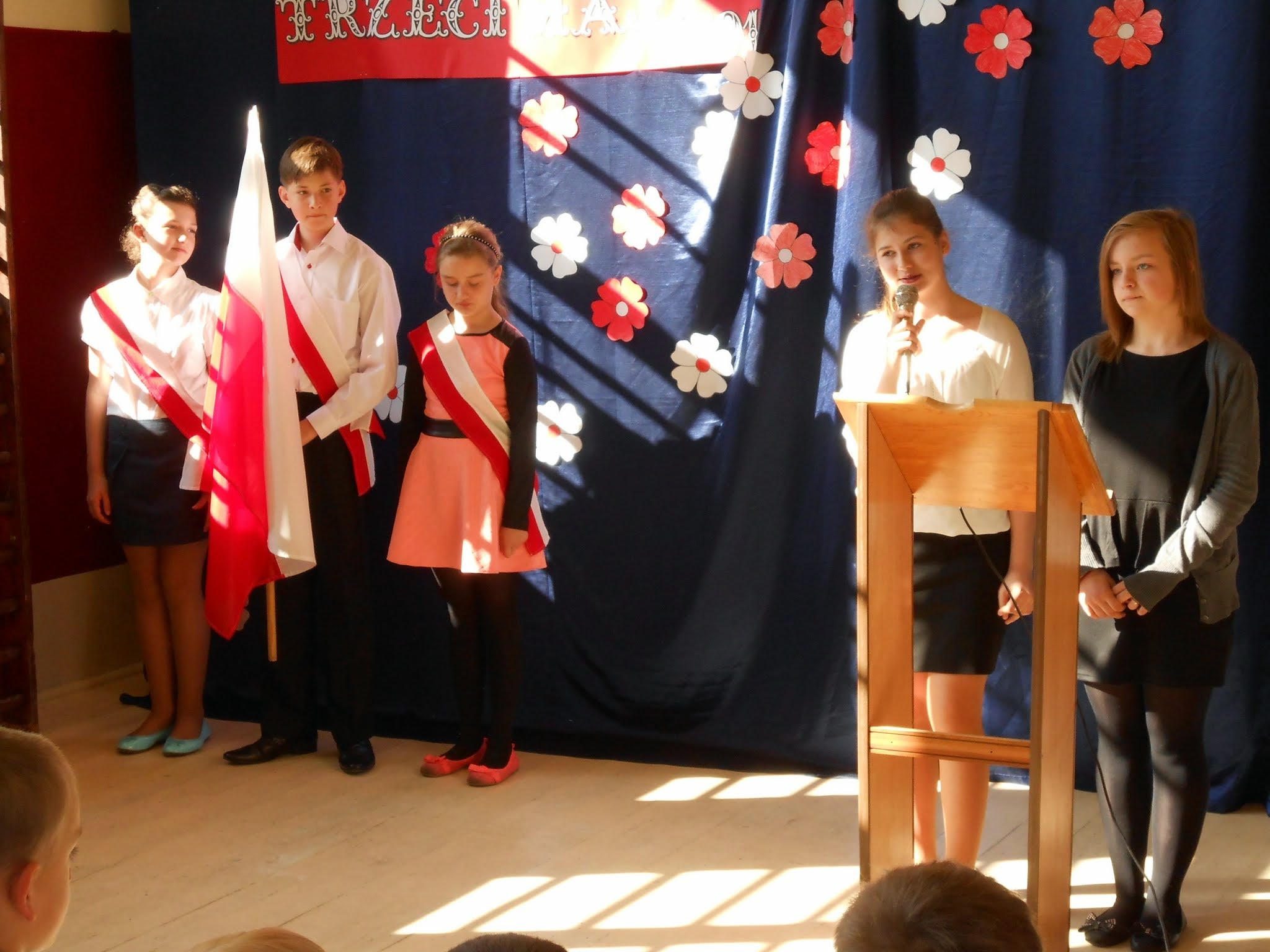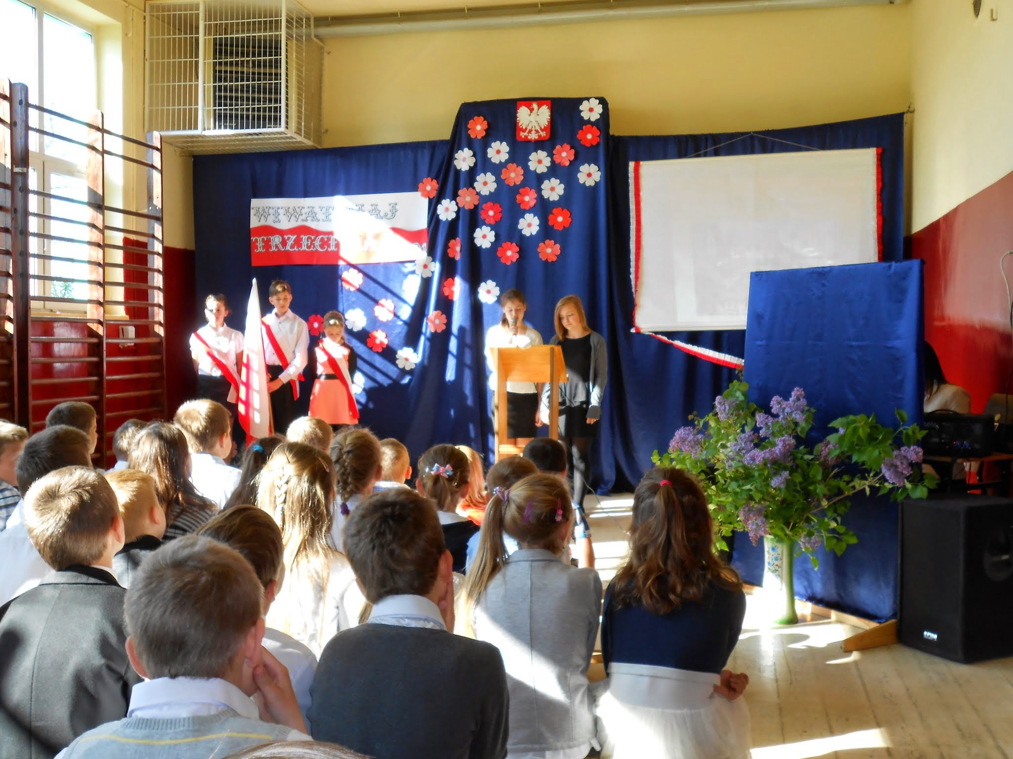Dnia 30 kwietnia społeczność uczniowska naszej szkoły, uczciła ważne dla nas święto: Uchwalenie Konstytucji 3Maja. W tym roku apel przygotowany przez uczniów klasy 6 odbył się w troszeczkę innej formie niż zazwyczaj. Kiedy wszyscy zebrali się na sali, wprowadzono poczet flagowy i zaśpiewano hymn. Następnie uczennice Julia Mieczyńska i Marcelina Zaborowska rozpoczęły część „artystyczną”. Uczennice przeprowadziły multimedialną lekcję historii. Została wyświetlona prezentacja, która została omówiona. Następnie uczniowie obejrzeli krótki film. A na koniec przeprowadzono quiz. Wszyscy z zainteresowaniem słuchali informacji dotyczących wydarzeń sprzed 223 lat i sprawdzili swoją pamięć podczas quizu.