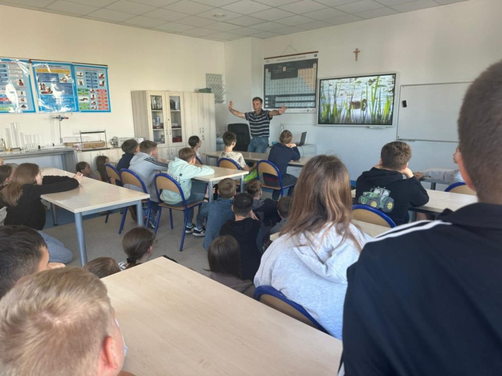 27 maja gościliśmy w naszej szkole przedstawiciela Fundacji Edukacyjnej Promyk Energii, który przybliżył uczniom wiadomości dotyczące technologii wykorzystania alternatywnych źródeł energii. Główną atrakcją warsztatów była Mobilna Platforma Edukacyjna OZE (Odnawialnych Źródeł Energii), na której zaprezentowano urządzenia do produkcji energii elektrycznej i cieplnej ze słońca, wiatru i powietrza. Były to: panel fotowoltaiczny, kolektor słoneczny, turbina wiatrowa i pompa ciepła. Podczas pokazu omówiono zagadnienia z dziedziny ochrony środowiska, ekologii, fizyki i przyrody. Była to bardzo ciekawa lekcja ekologii.