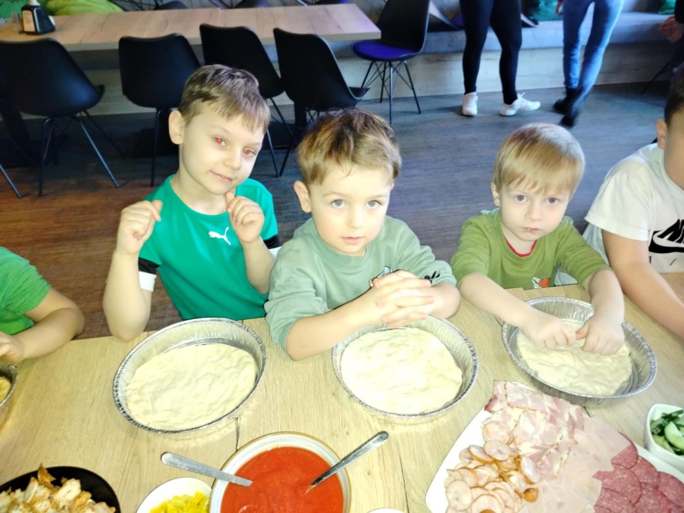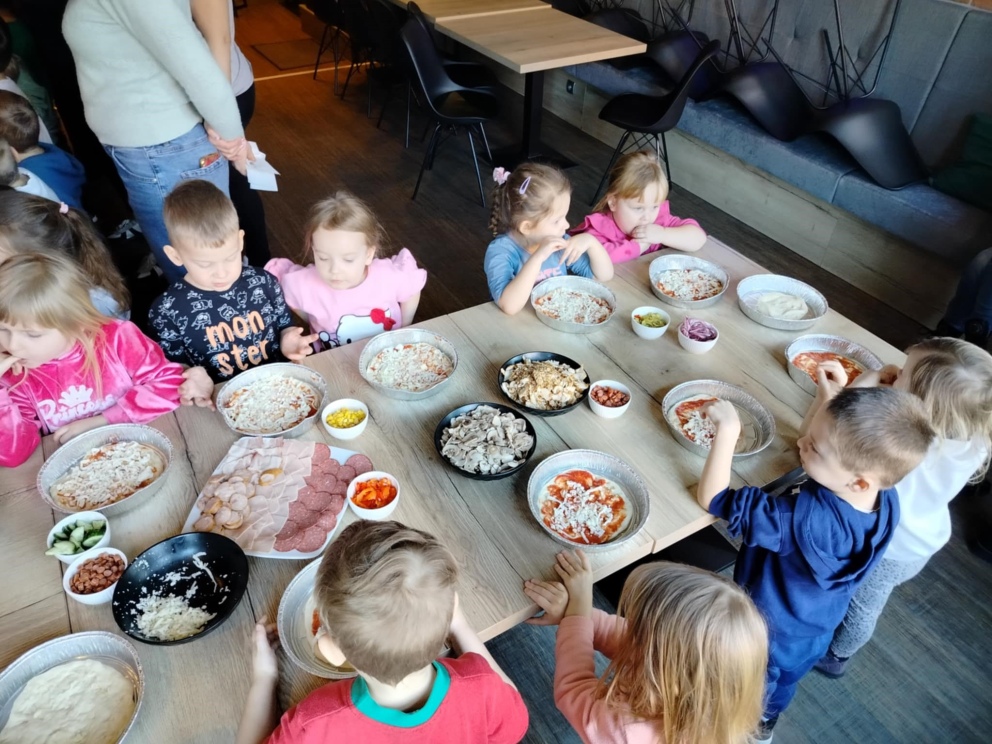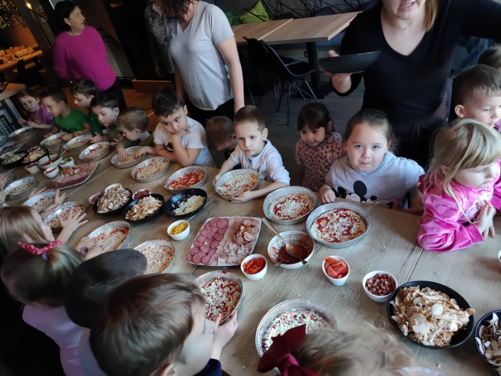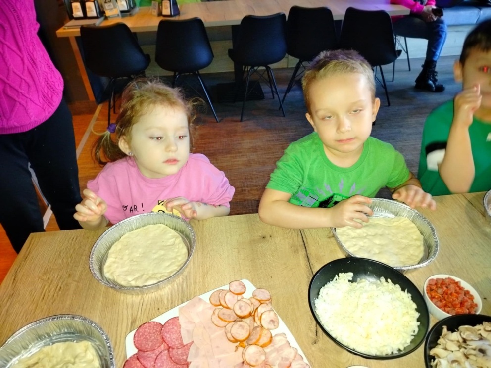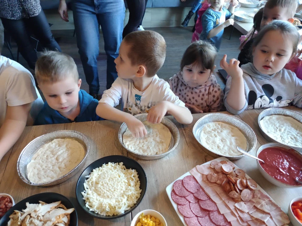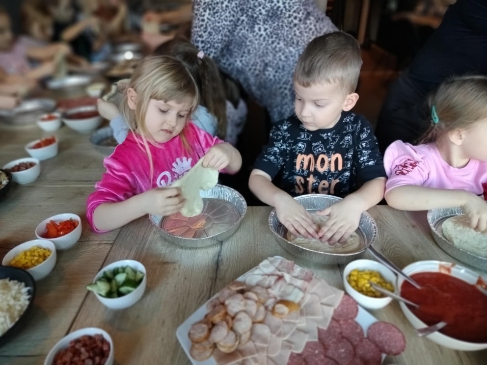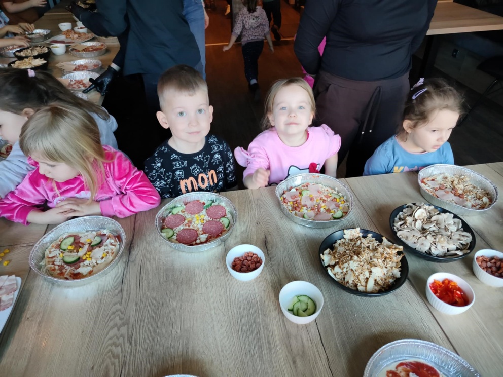 6 marca dzieci z 10 godzinnego oddziału przedszkolnego wraz z zerówką wzięły udział w warsztatach kulinarnych w restauracji COBA w Brodnicy. Każde z dzieci własnoręcznie ugniatało i formowało pizzę, dobierało i układało dodatki. Na zakończenie mali kucharze skosztowali przygotowane przez siebie pizze.