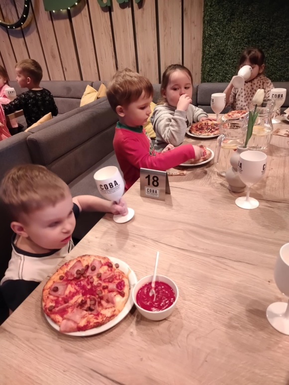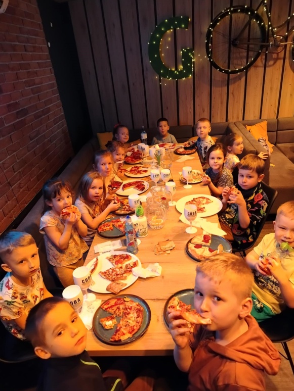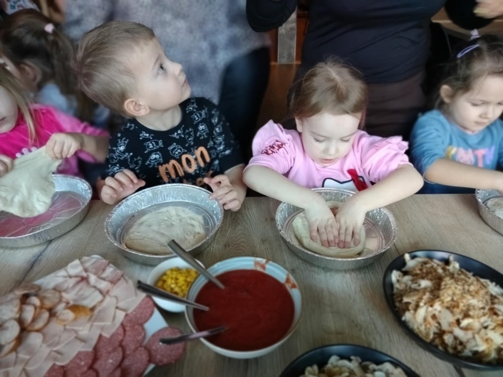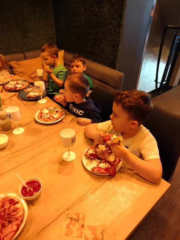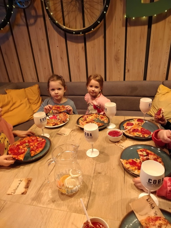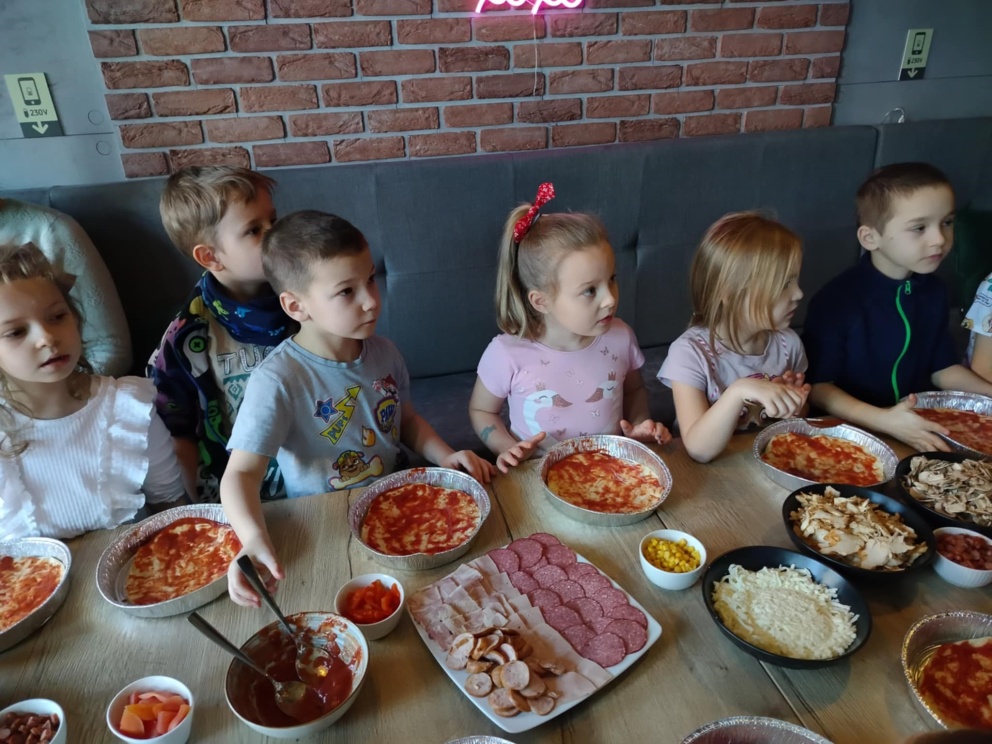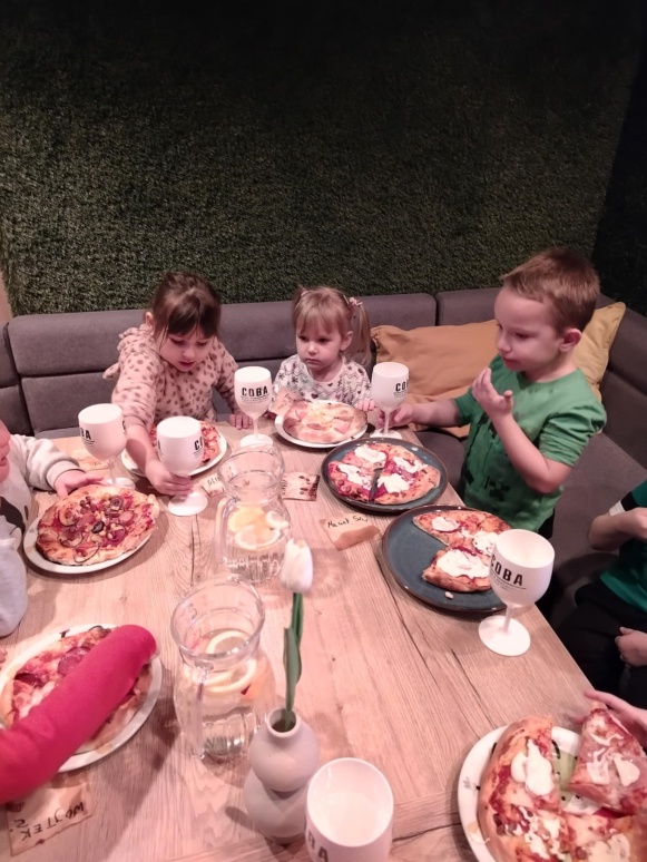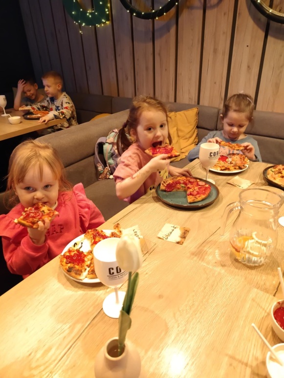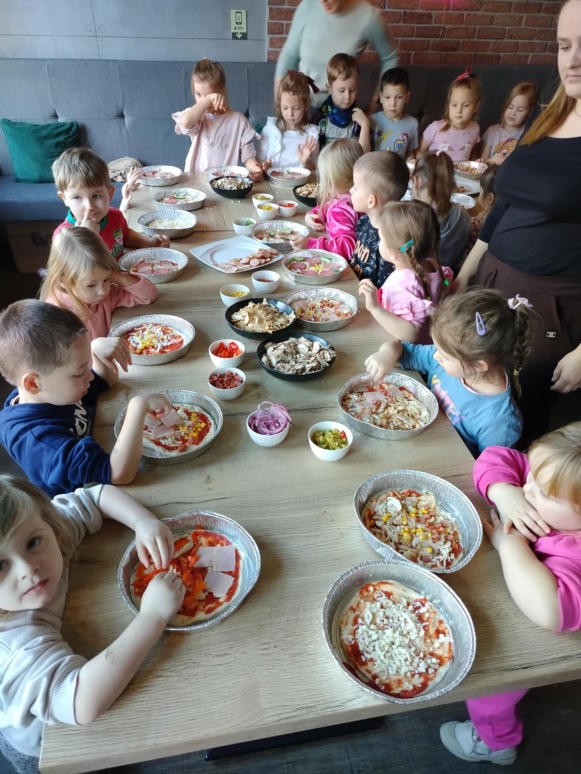 6 marca dzieci z 10 godzinnego oddziału przedszkolnego wraz z zerówką wzięły udział w warsztatach kulinarnych w restauracji COBA w Brodnicy. Każde z dzieci własnoręcznie ugniatało i formowało pizzę, dobierało i układało dodatki. Na zakończenie mali kucharze skosztowali przygotowane przez siebie pizze.