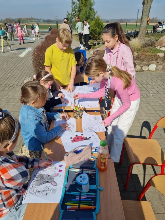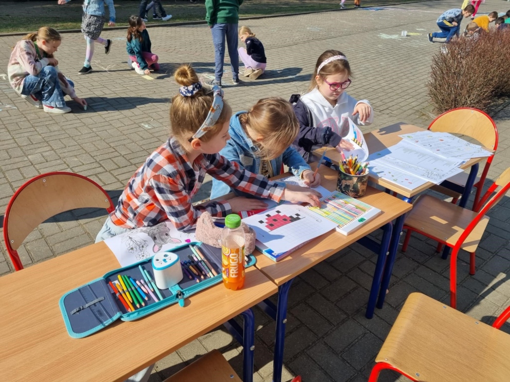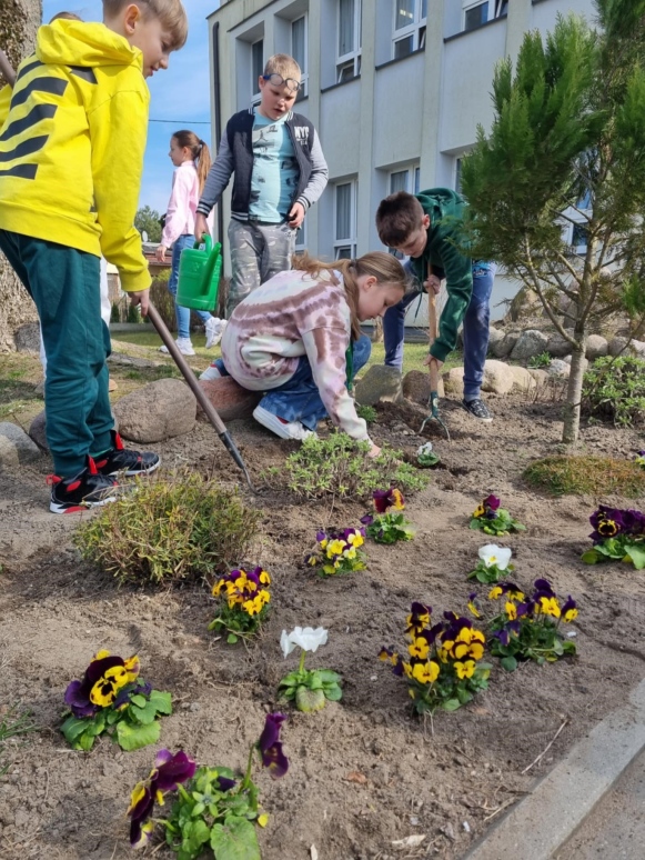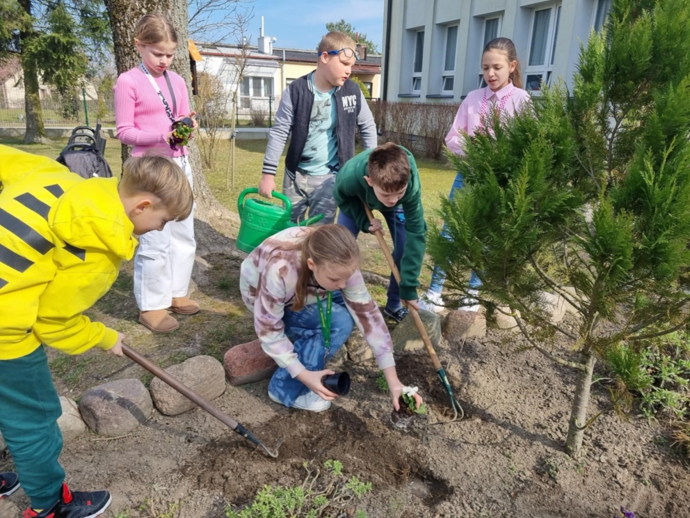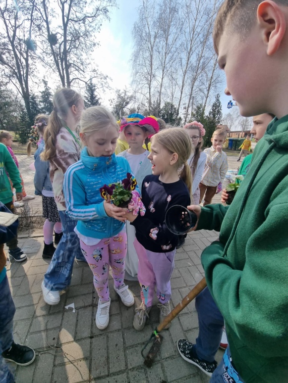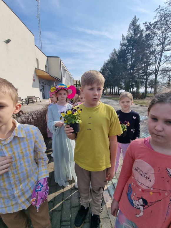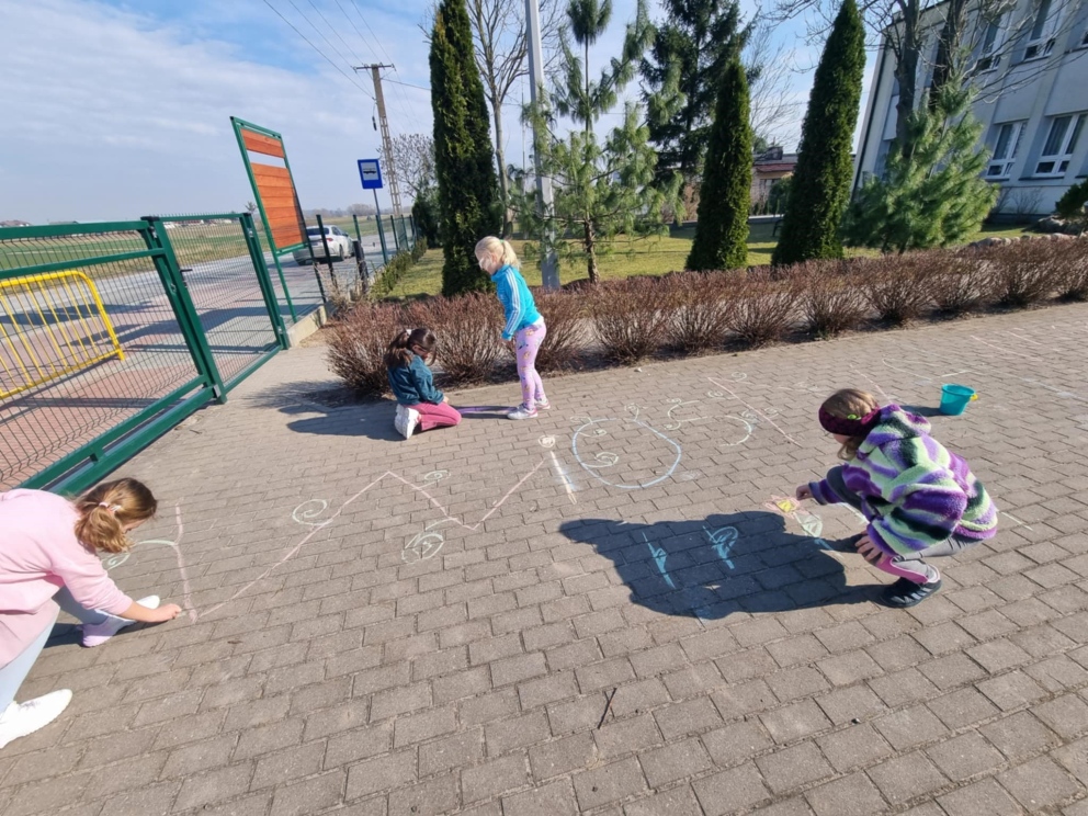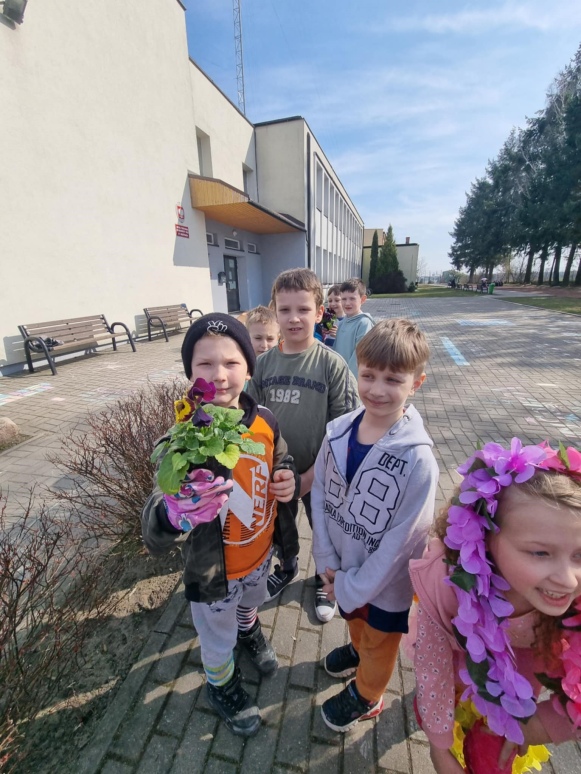 21 marca uczniowie klas I-VIII oraz dzieci z oddziałów przedszkolnych powitali wiosnę w radosnej atmosferze, pełnej kreatywnych aktywności. Samorząd Uczniowski, który w tym dniu przygotował wiele atrakcji, zadbał o to, by pierwszy dzień wiosny stał się niezapomnianym wydarzeniem. Z samego rana dzieci miały okazję cieszyć się ciepłymi promieniami słońca, realizując różnorodne zadania, zagadki i łamigłówki. Była to doskonała okazja, by połączyć naukę z zabawą. Uczniowie kolorowali wizerunki Pani Wiosny oraz wszystko, co kojarzy się z tą piękną porą roku. Wśród przygotowanych aktywności znalazły się także twórcze zadania na boisku szkolnym, gdzie dzieci mogły malować kredą, wyrażając siebie i przedstawiając wiosenne inspiracje. Kreatywność uczniów znalazła również swoje miejsce na kartkach papieru. Przy akompaniamencie muzyki zwiastującej nadejście wiosny powstały prace plastyczne, które przedstawiały tę porę roku w najpiękniejszy sposób. Na korytarzach szkoły zagościły kolorowe plakaty, które wypełniły przestrzeń żywymi barwami, a uczniowie mogli wykazać się talentem plastycznym, przygotowując wiosenne dekoracje. Jednym z punktów, który cieszył się dużym zainteresowaniem, było przebieranie się za Panią Wiosnę lub inne wiosenne postacie. Dzieci miały możliwość wcielić się w role, które pasowały do tematyki dnia, bawiąc się przy tym doskonale. Na zakończenie dnia uczniowie klas I-III wzięli udział w ogrodowej akcji sadzenia kwiatów. Wspólna praca w ogrodzie miała na celu upiększenie otoczenia szkoły, a posadzone kwiaty będą przez długi czas przypominać o tym wyjątkowym dniu i o wiośnie, którą wszyscy tak radośnie powitali. Celem organizacji tego wydarzenia było nie tylko wprowadzenie uczniów w atmosferę wiosny, ale także rozwijanie ich kreatywności, wyobraźni oraz umiejętności współpracy. Dzieci miały okazję do aktywnego uczestnictwa w różnorodnych zadaniach, co pozwoliło im na wyrażenie siebie w różnych formach artystycznych i twórczych. Dodatkowo, poprzez posadzenie kwiatów, uczniowie mieli szansę na zrozumienie znaczenia dbania o środowisko i jego upiększanie. Takie inicjatywy sprzyjają kształtowaniu postaw proekologicznych oraz wprowadzają dzieci w tematykę zmian zachodzących w przyrodzie w zależności od pory roku. Witamy wiosnę w naszej szkole z radością, energią i pomysłowością!