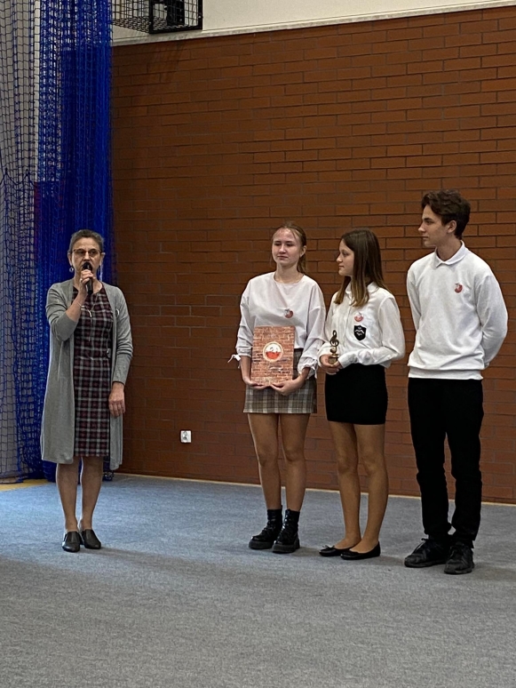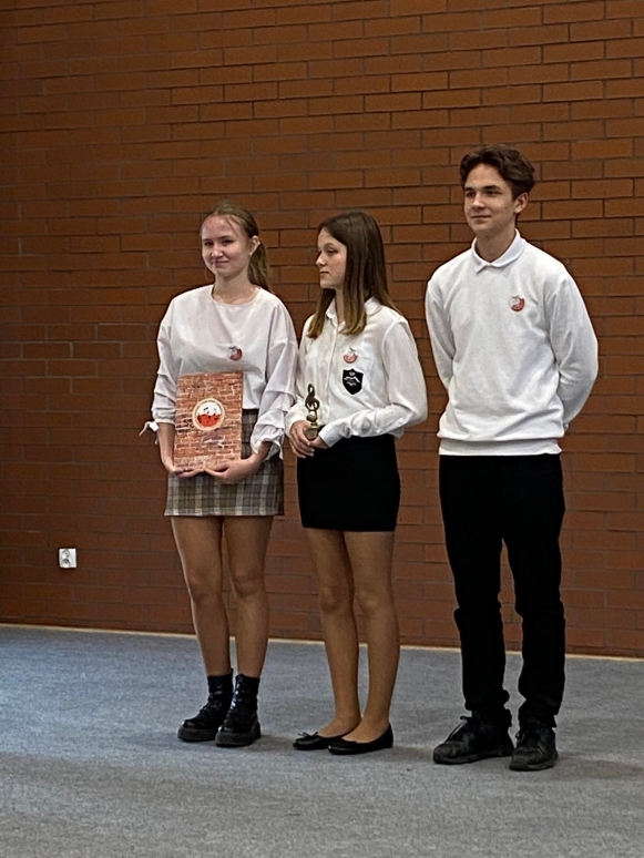 Przedstawiciele naszej szkoły w składzie: Oliwia Nadarzyńska, Zuzanna Krzepicka oraz Wojciech Orłowski wzięli udział w Wojewódzkim Festiwalu Pieśni Patriotycznej „Tobie Polsko”, który odbył się 9 listopada w Zamku Bierzgłowskim. Ósmoklasiści wyśpiewali III miejsce. Uczniów do konkursu przygotowała nauczycielka muzyki pani Bożena Grela. Serdecznie gratulujemy.