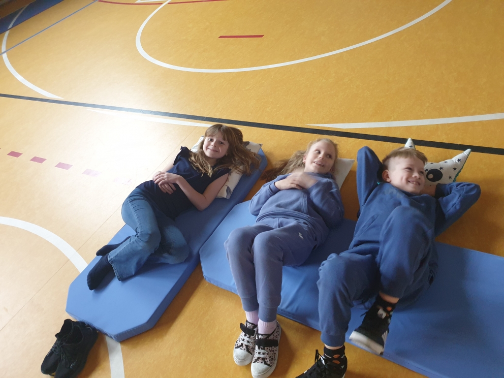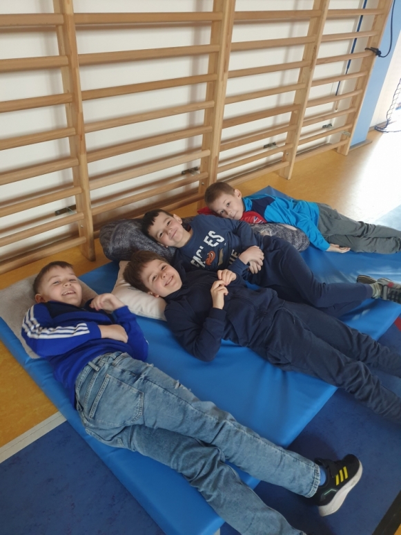 Uczniowie zaopatrzeni w poduchy i przytulanki podczas przerw lekcyjnych przy muzyce relaksacyjnej oddali się całkowitemu odprężeniu i relaksacji. Głównym celem było zmniejszenie ilości decybeli na szkolnych korytarzach, a także ukazania skutków przebywania w hałasie. Dzięki temu uczniowie dostrzegli zalety ciszy, a pozytywna reakcja na wyciszenie zachęca nas do kontynuowania akcji w wybrane dni przez uczniów. Ponadto wykonywali ćwiczenia gimnastyczne relaksujące mózg. Rozwiązywali krzyżówki, rebusy i łamigłówki. Układali rymowanki i wierszyki o mózgu.