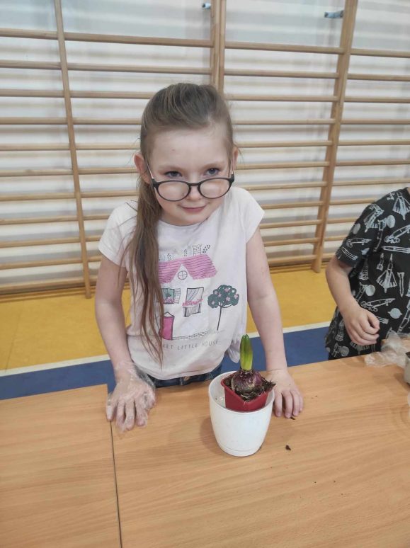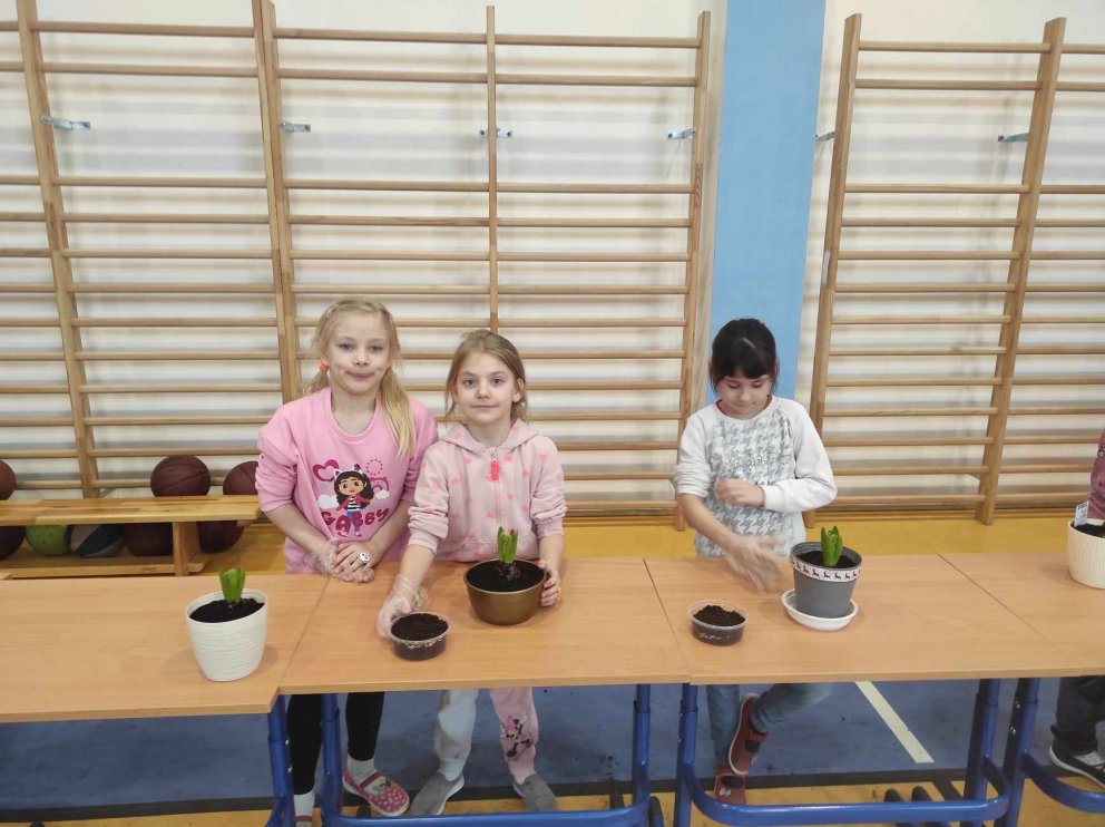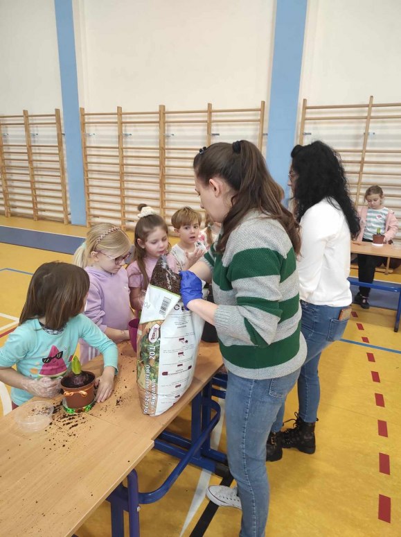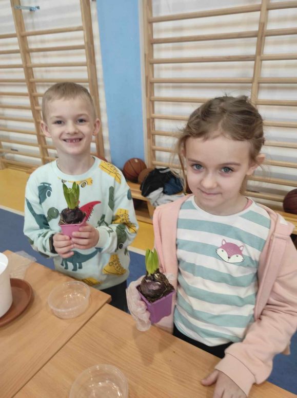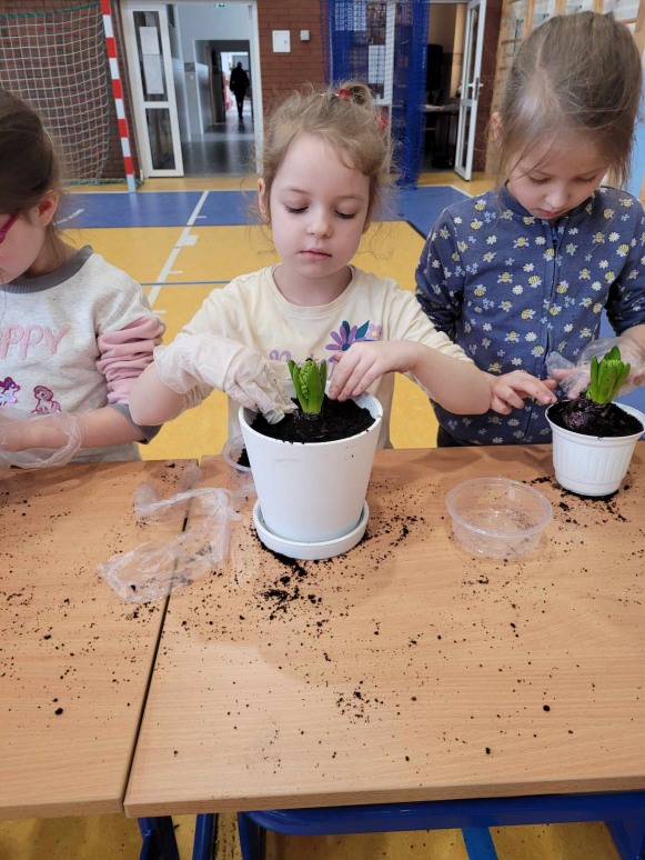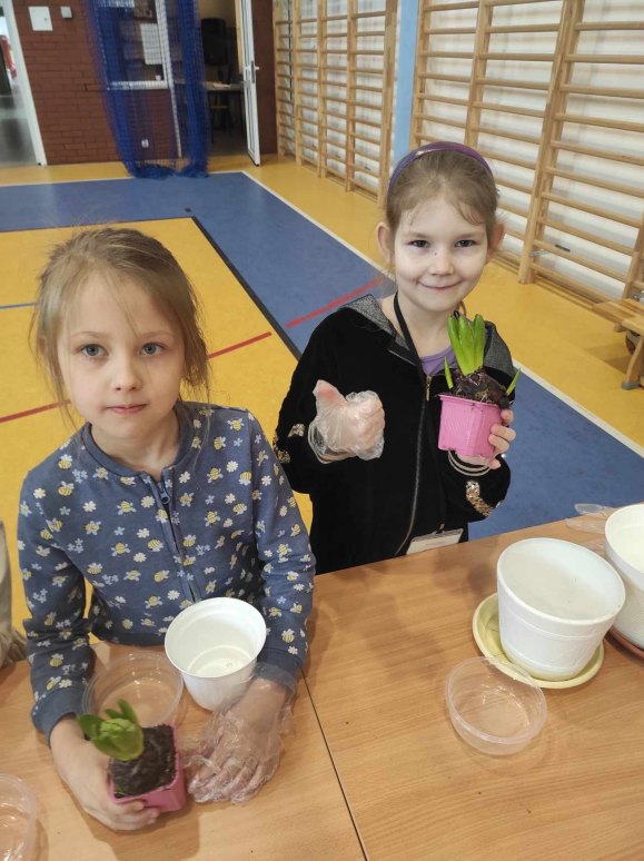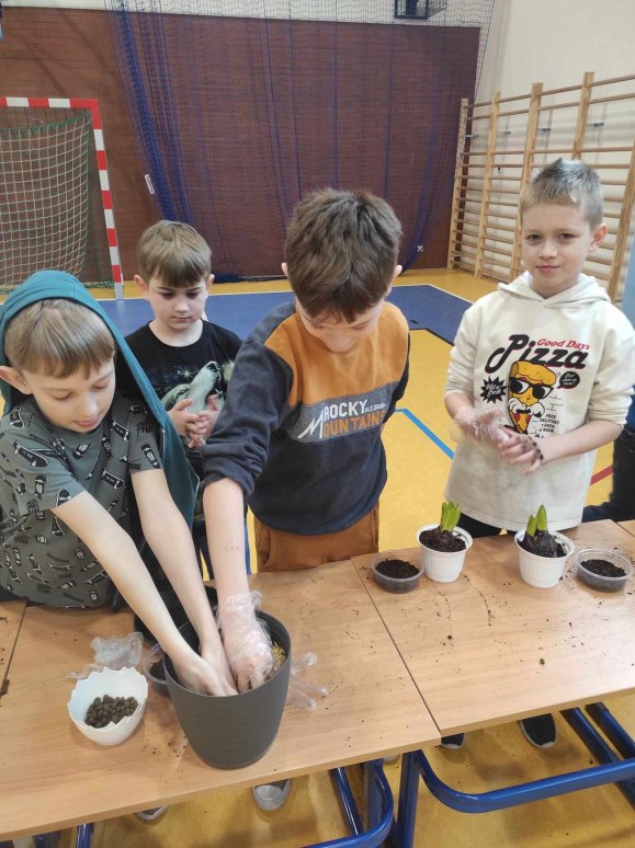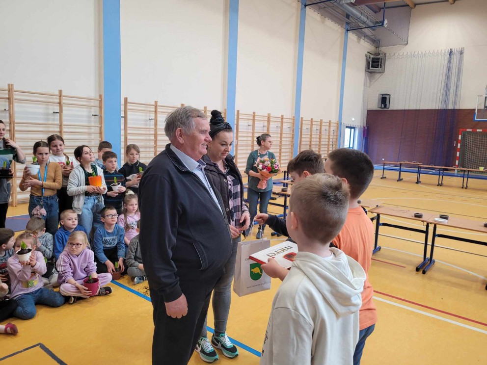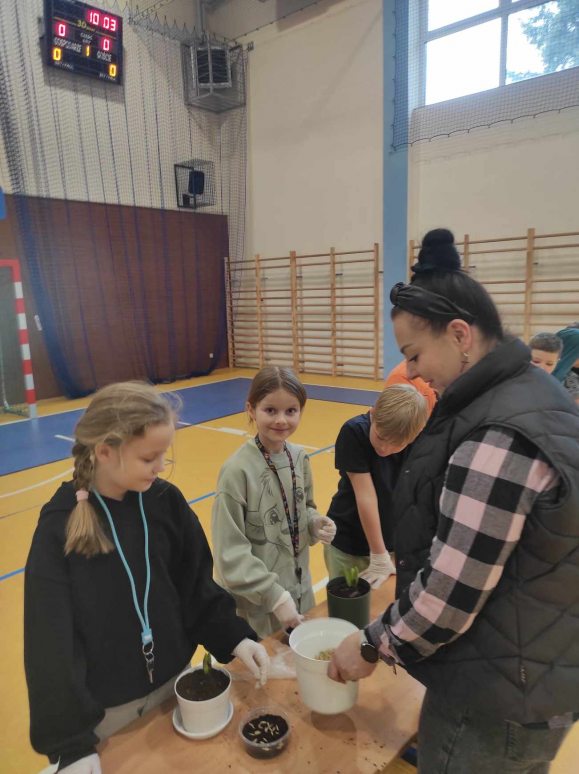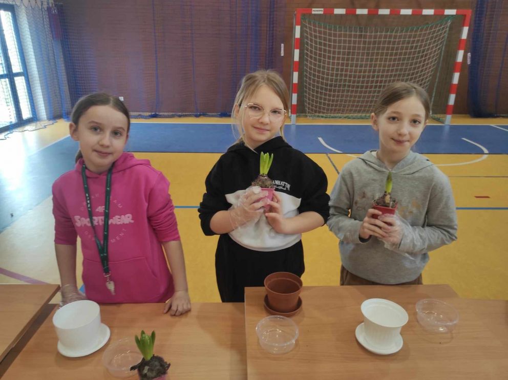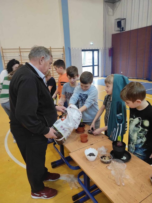 20 marca odbyły się w naszej szkole warsztaty ogrodniczo-florystyczne dla uczniów klas 0-III. Celem spotkania było zapoznanie z zawodem ogrodnika oraz poznanie technik układania kompozycji z różnorodnych materiałów. Zajęcia przeprowadził ogrodnik pan Władysław Szulc wraz z florystką panią Agnieszką Konczalską. Warsztaty rozpoczęły się częścią teoretyczną, w której pan Władysław opowiedział zgromadzonym jak uprawiać zdrowe rośliny, jak je chronić, jak o nie dbać. Wyjaśnił, dlaczego należy obcinać pędy. Uświadomił, że naturalne nawozy i opryski są niezbędne do prawidłowej uprawy roślin. Wymienił nazwy najpopularniejszych szkodników, które atakują rośliny. Następnie głos zabrała pani Agnieszka, która przedstawiła charakter swojej pracy, który polega na tym, że trzeba wykazać się znajomością różnych rodzajów kwiatów ciętych i doniczkowych. Wymieniła dodatki, które można wykorzystać przy tworzeniu bukietów. Opowiedziała, w jaki sposób dbać o kwiaty. Jak często należy je odżywiać. Uświadomiła, że rośliny należy nie tylko podlewać, ale również chronić przed trudnymi warunkami atmosferycznymi. Po części teoretycznej wszyscy zgromadzeni przystąpili do części praktycznej, która rozpoczęła się sadzeniem cebulek hiacyntów do doniczek. Następnie dzieci siały owies, który będzie piękną ozdobą wielkanocnego stołu. Po wykonanej pracy oglądały kwiaty doniczkowe i cięte. Porównywały ich wygląd, zapach, określały nazwę. Pani Agnieszka pokazała najpiękniejsze kwiaty wiosenne. Dzięki tym warsztatom dzieci miały kontakt z żywymi kwiatami, materiałami florystycznymi jak również możliwość rozwoju kreatywności, umiejętności manualnych, które są również ważne dla późniejszego rozwoju osobowości dziecka. Na zakończenie uczniowie wspólnie z florystką wykonały piękny bukiet, który został złożony na ręce pani dyrektor Bożeny Greli przez pana Władysława Szulca. Składamy serdeczne podziękowania za przeprowadzone warsztaty. Za doniczki, sadzonki, ziemię i inne materiały, które zostały podarowane przez Sklep Ogrodniczy Jakub. Dziękujemy za poświęcony nam czas oraz fachowe porady.