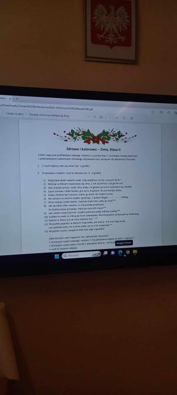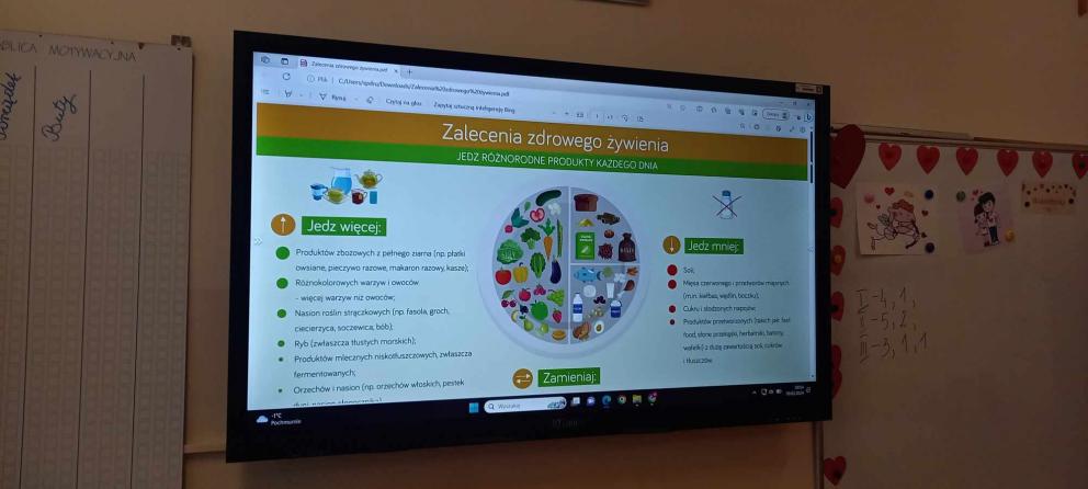 9 lutego klasa II wraz ze swoją wychowawczynią przez trzy godziny lekcyjne realizowała zadania w ramach interwencji: „Zdrowo i kolorowo”-edycja zimowa. Pani Monika Grela-Wardęcka zorganizowała dla swoich uczniów zajęcia poświęcone zdrowemu odżywianiu się, o którym również warto pamiętać podczas ferii. Dzieci dowiedziały się jak należy zdrowo się odżywiać, dlaczego warzywa i owoce są tak ważne w naszej diecie, jakie znaczenie dla zdrowego stylu życia ma ruch. Pani wychowawczyni wspomniała o higienie przygotowywania posiłków i zasadach kulturalnego zachowania się przy stole. Podczas zajęć dzieci obejrzały filmiki i plansze edukacyjne o zdrowym stylu życia. Klasa została podzielona na grupy. Każda z nich rozwiązywała krzyżówki, zagadki i rebusy. Poszczególne grupy wykonywały prace plastyczne w postaci zdrowych talerzy, na których znalazło się wszystko to, co powinno być w codziennym jadłospisie. Na zakończenie zajęć uczniowie układali rymowanki o zdrowym odżywianiu.