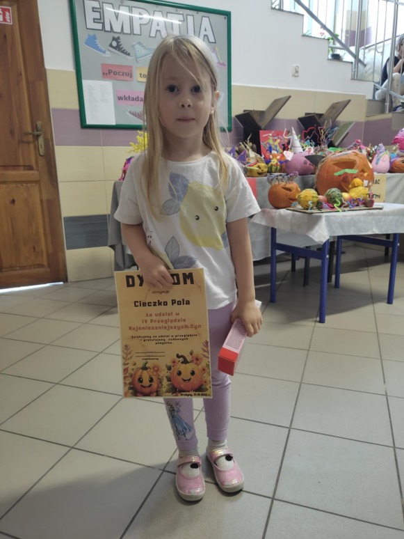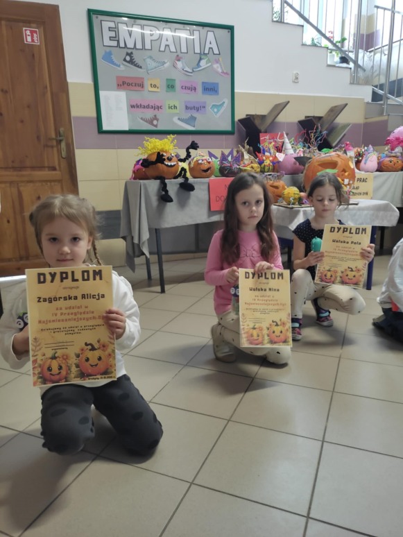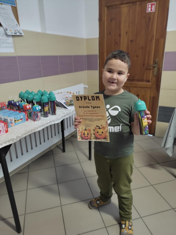 Wzorem lat ubiegłych 10- godzinny oddział przedszkolny zorganizował IV Przegląd Najśmieszniejszych Dyń. 31 października nastąpiło podsumowanie tego wydarzenia, w którym wzięło udział 37 uczestników z obu oddziałów przedszkolnych. Każdy z nich otrzymał pamiątkowy dyplom oraz upominek. Wszystkie prace można było podziwiać na szkolnym korytarzu, gdzie zorganizowano wystawę.