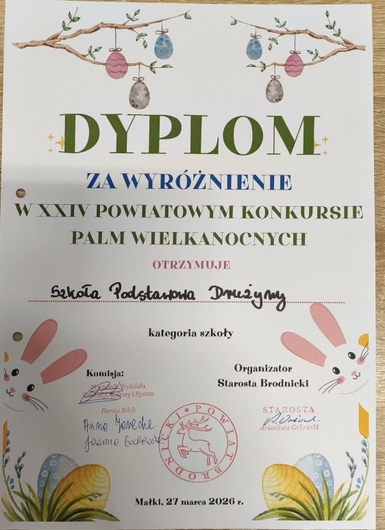 27 marca w Świetlicy Wiejskiej w Małkach odbył się XXV Gminny Konkurs Palm Wielkanocnych, który zgromadził wielu uczestników z lokalnych szkół i instytucji. Wydarzenie miało na celu kultywowanie tradycji wykonywania palm wielkanocnych oraz rozwijanie zdolności artystycznych. Nasza szkoła aktywnie włączyła się w konkurs, przygotowując barwną i starannie wykonaną palmę. Wysiłek został doceniony przez jury. Szkoła otrzymała wyróżnienia, co jest dużym powodem do dumy. Wyróżnienie otrzymaliśmy również w XXIV Powiatowym Konkursie Palm Wielkanocnych. Udział w konkursach był dla nas nie tylko okazją do zaprezentowania swoich umiejętności, ale także sposobem na pogłębianie wiedzy o tradycjach wielkanocnych oraz rozwijanie kreatywności. Otrzymane wyróżnienia są dowodem zaangażowania uczniów oraz wsparcia ze strony nauczycieli i rodziców.