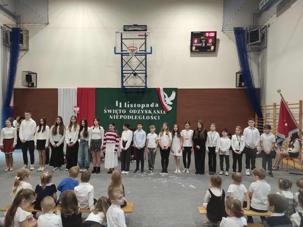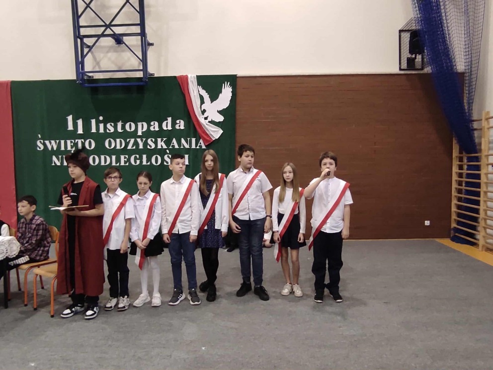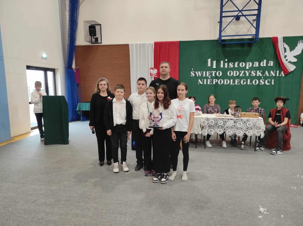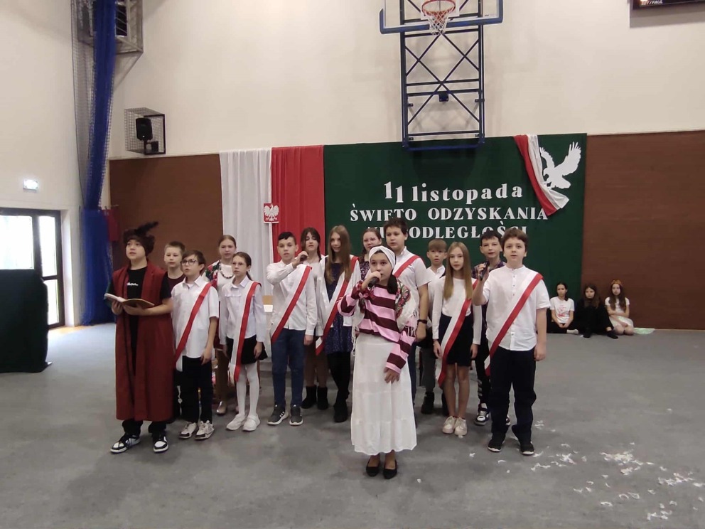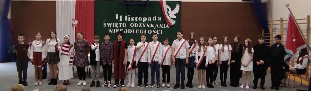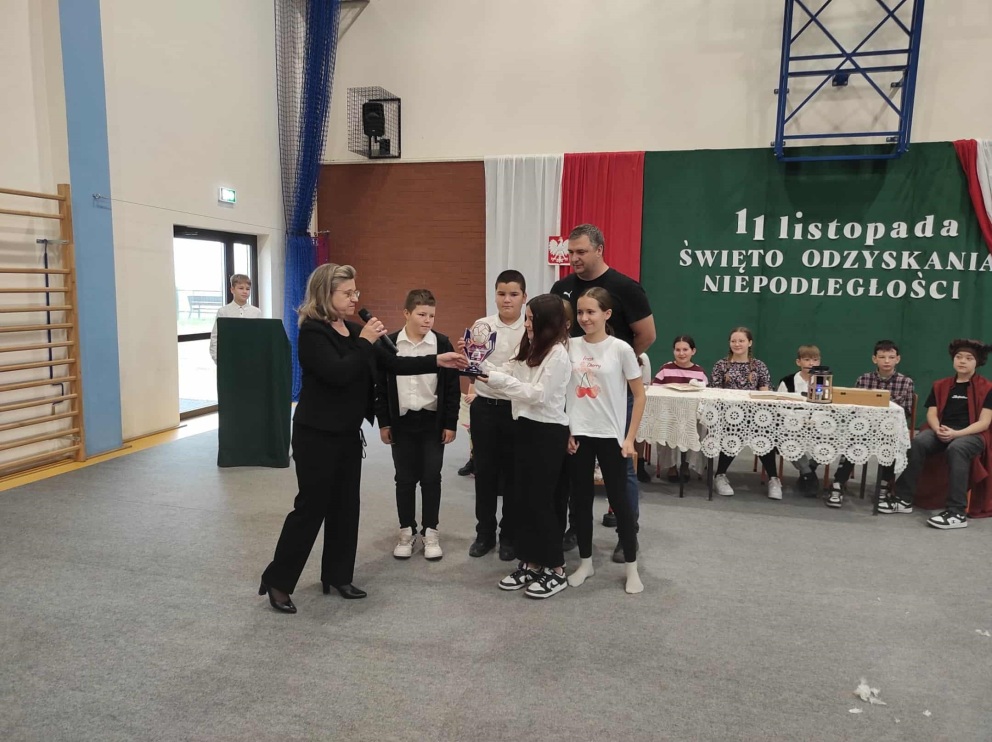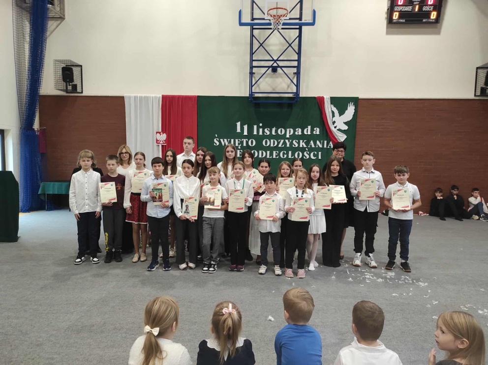 11 listopada to wyjątkowy dzień w historii naszego kraju – rocznica odzyskania przez Polskę niepodległości. Z tej okazji w naszej szkole odbyła się uroczysta akademia. Po wspólnym odśpiewaniu hymnu narodowego przez wszystkich uczestników spotkania, uczniowie zaprezentowali wzruszający program artystyczny, ukazując drogę Polaków do wolności. Występ wprowadził wszystkich obecnych w nastrój zadumy i refleksji nad znaczeniem Ojczyzny, wolności i patriotyzmu w życiu każdego człowieka. Podczas uroczystości laureaci Konkursu Recytatorskiego Poezji Patriotycznej otrzymali pamiątkowe dyplomy oraz nagrody książkowe ufundowane przez biblioteką szkolną w ramach realizacji Narodowego Programu Rozwoju Czytelnictwa. Finaliści konkursu mieli okazję zaprezentować przed całą społecznością szkolną własne interpretacje utworów poetyckich. Zebrani usłyszeli recytację dwóch wierszy o tematyce patriotycznej. Jako pierwsza wystąpiła Magdalena Hinz, deklamując utwór pt. „Leć, Orle Biały”. Następnie zaprezentowała się Maja Cieczko w wierszu Wisławy Szymborskiej pt. „Gawęda o miłości ziemi ojczystej”. Podczas uroczystego apelu Pani Dyrektor pogratulowała młodym sportowcom, którzy z dumą reprezentowali naszą szkołę w Finale Wojewódzkim Turnieju „Ręczna na Orliku”. Zespół naszych uczniów zaprezentował wspaniałą grę, ogromne zaangażowanie i ducha walki, zdobywając III miejsce w województwie!