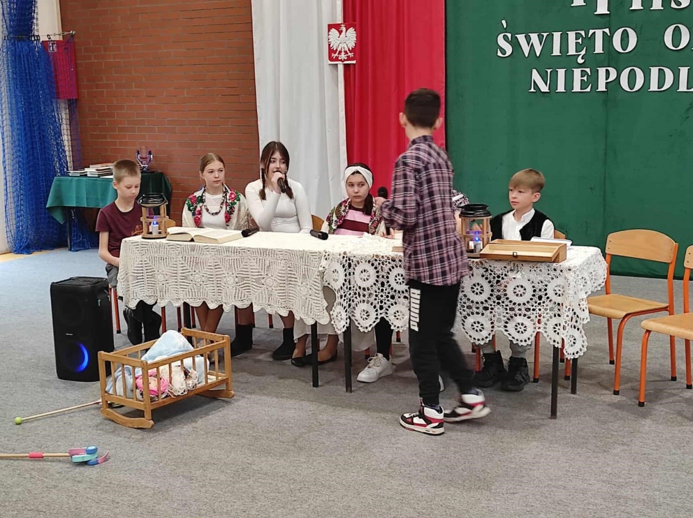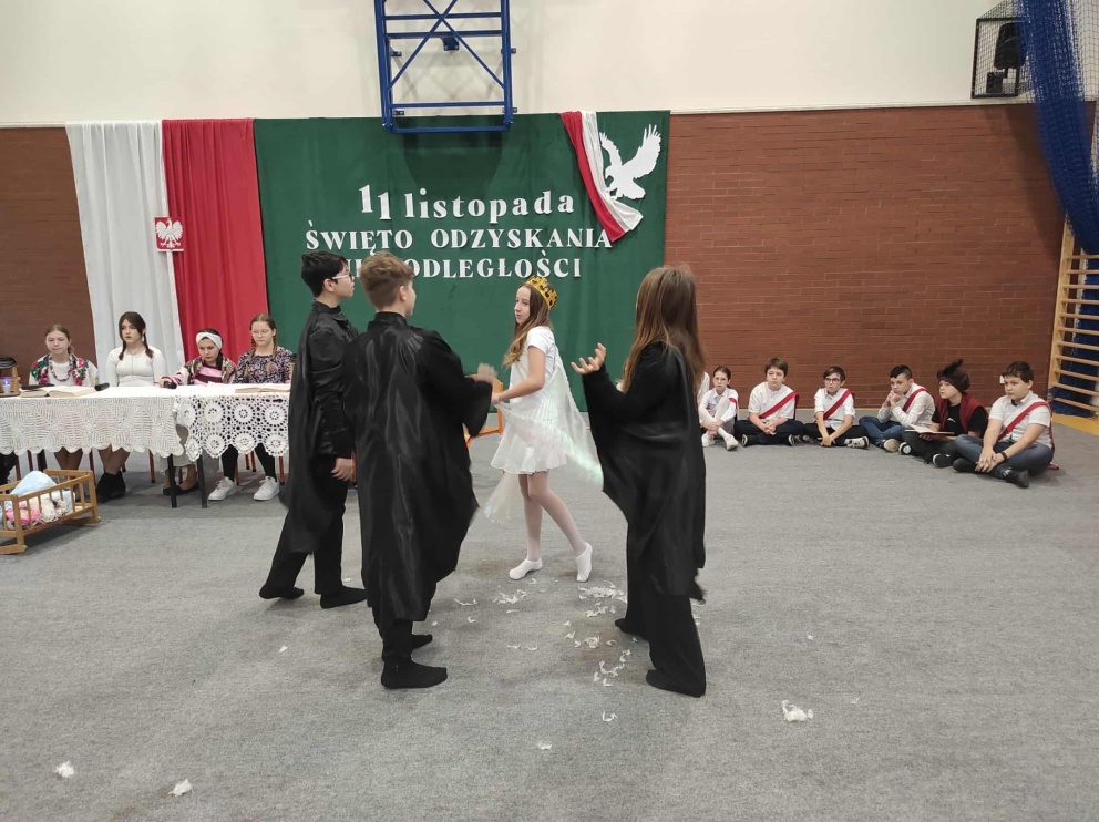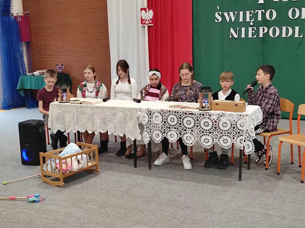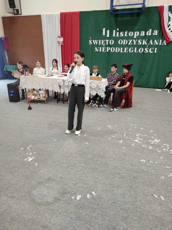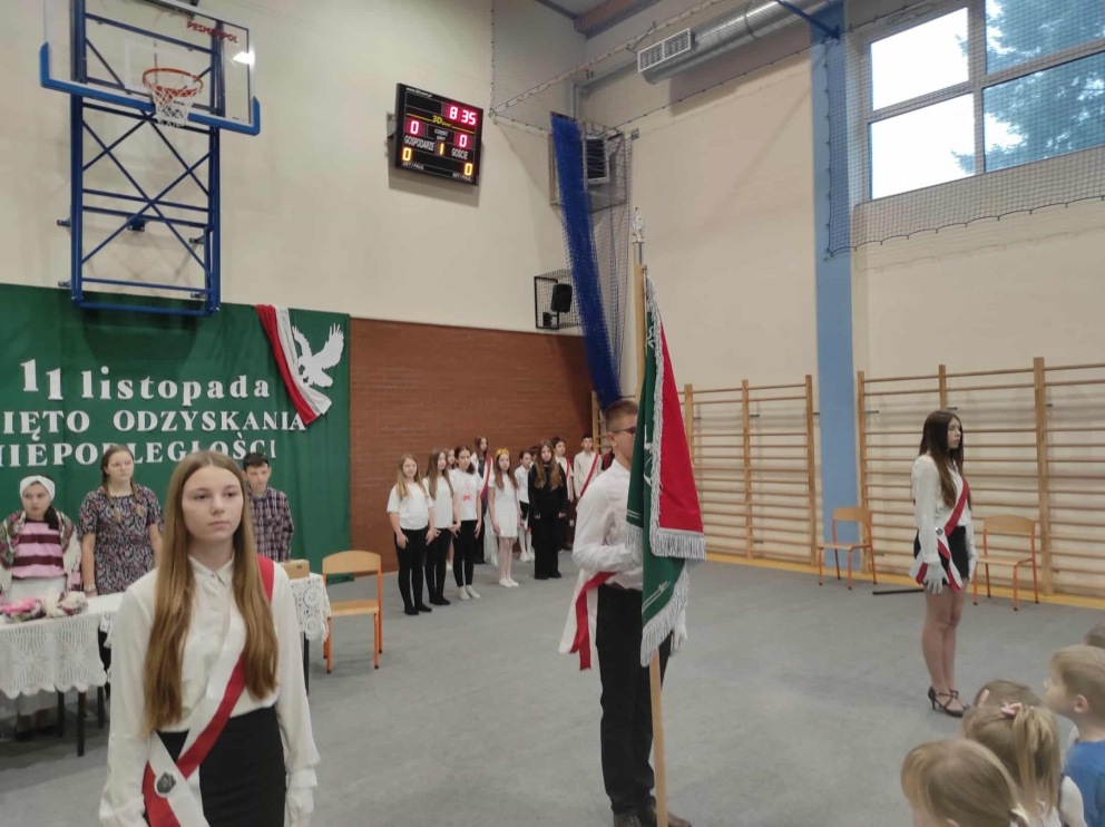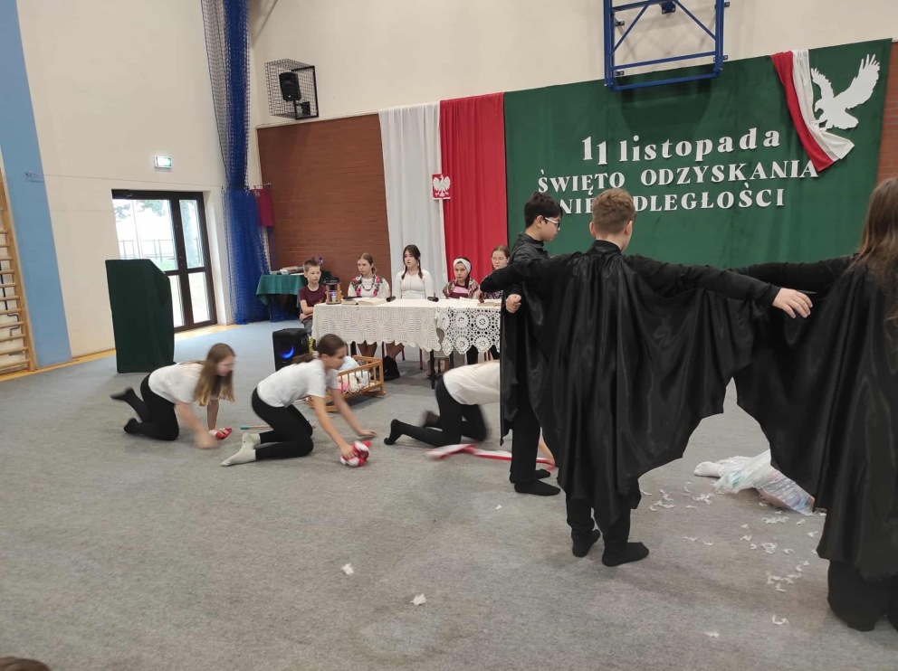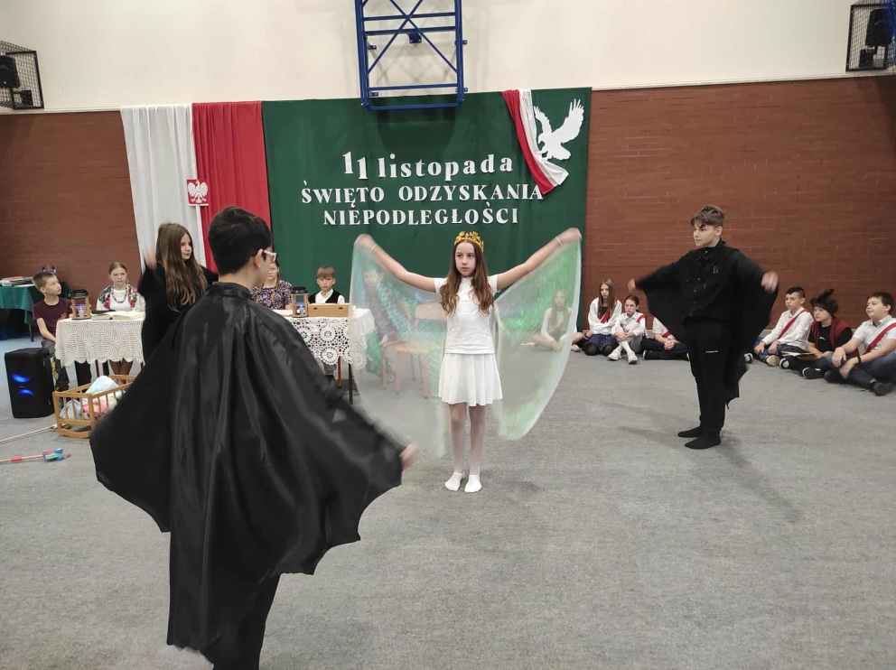 11 listopada to wyjątkowy dzień w historii naszego kraju – rocznica odzyskania przez Polskę niepodległości. Z tej okazji w naszej szkole odbyła się uroczysta akademia. Po wspólnym odśpiewaniu hymnu narodowego przez wszystkich uczestników spotkania, uczniowie zaprezentowali wzruszający program artystyczny, ukazując drogę Polaków do wolności. Występ wprowadził wszystkich obecnych w nastrój zadumy i refleksji nad znaczeniem Ojczyzny, wolności i patriotyzmu w życiu każdego człowieka. Podczas uroczystości laureaci Konkursu Recytatorskiego Poezji Patriotycznej otrzymali pamiątkowe dyplomy oraz nagrody książkowe ufundowane przez biblioteką szkolną w ramach realizacji Narodowego Programu Rozwoju Czytelnictwa. Finaliści konkursu mieli okazję zaprezentować przed całą społecznością szkolną własne interpretacje utworów poetyckich. Zebrani usłyszeli recytację dwóch wierszy o tematyce patriotycznej. Jako pierwsza wystąpiła Magdalena Hinz, deklamując utwór pt. „Leć, Orle Biały”. Następnie zaprezentowała się Maja Cieczko w wierszu Wisławy Szymborskiej pt. „Gawęda o miłości ziemi ojczystej”. Podczas uroczystego apelu Pani Dyrektor pogratulowała młodym sportowcom, którzy z dumą reprezentowali naszą szkołę w Finale Wojewódzkim Turnieju „Ręczna na Orliku”. Zespół naszych uczniów zaprezentował wspaniałą grę, ogromne zaangażowanie i ducha walki, zdobywając III miejsce w województwie!