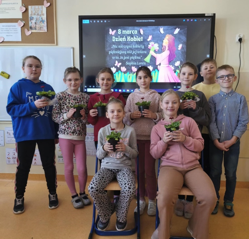 7 marca odbyły się uroczyste obchody Dnia Kobiet, które jak co roku były okazją do okazania szacunku, życzliwości i wdzięczności wszystkim paniom oraz dziewczętom. Tego dnia panowała wyjątkowa, radosna atmosfera, a uczniowie zadbali o to, aby każda kobieta poczuła się doceniona i wyjątkowa. Podczas wydarzenia chłopcy złożyli wszystkim paniom serdeczne życzenia. Nauczycielki, panie z obsługi, administracji oraz dziewczynki otrzymały symboliczne kwiaty oraz drobne upominki. Był to miły gest, który sprawił wiele radości i podkreślił wyjątkowy charakter tego dnia. Dzień Kobiet w naszej szkole był nie tylko okazją do wspólnego świętowania, ale również do integracji społeczności szkolnej. Uczniowie mieli możliwość wspólnej zabawy, rozmów oraz spędzenia czasu w miłej atmosferze. To wydarzenie na długo pozostanie w pamięci uczestników jako dzień pełen uśmiechu, serdeczności i wzajemnej życzliwości.