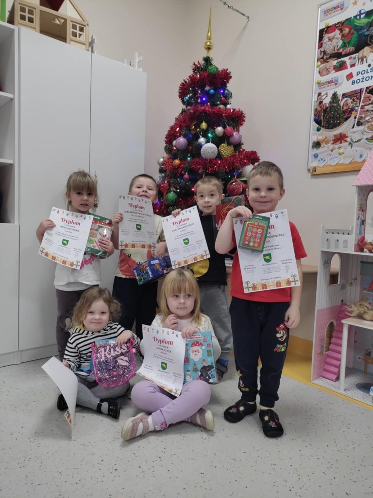 Przedszkolaczki wzięły udział w Gminnym Konkursie „Świąteczny Zawrót Głowy”. Za swą pracę nagrody otrzymali: Aleksander Zielaskiewicz, Laura Kłyza, Lidia Kużaj, Anna Siecińska, Maksymilian Bydłos, Szymon Wondołowski.