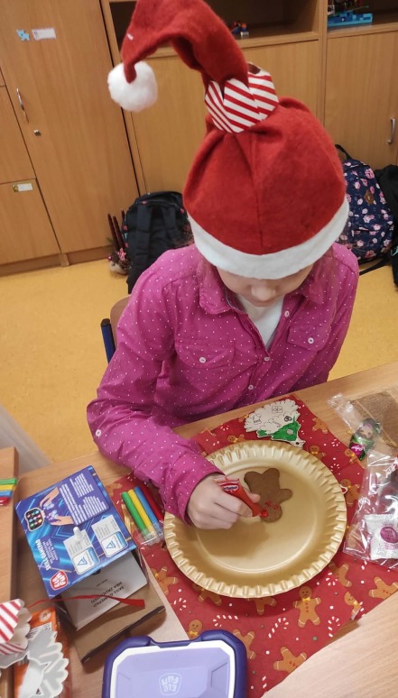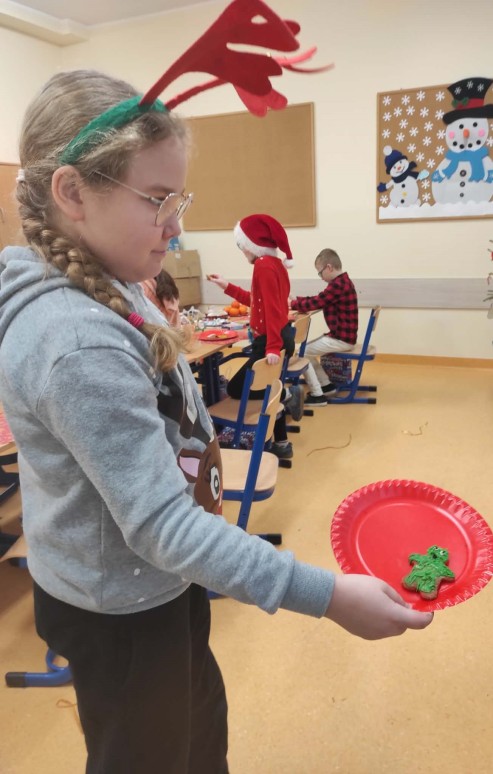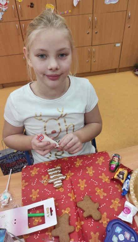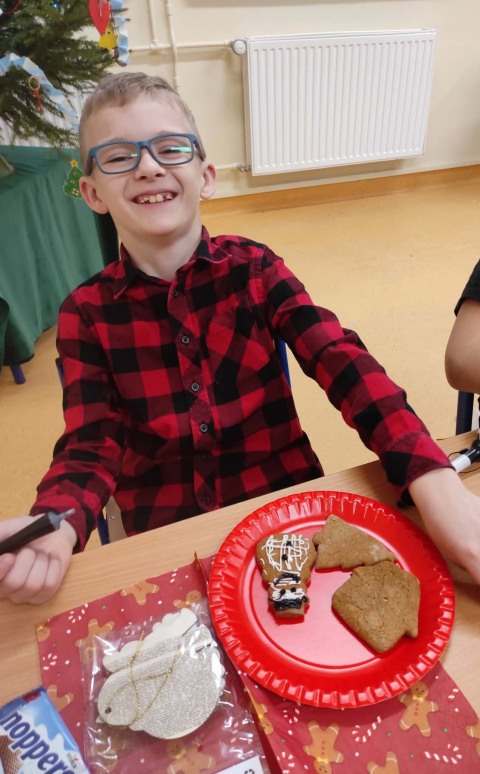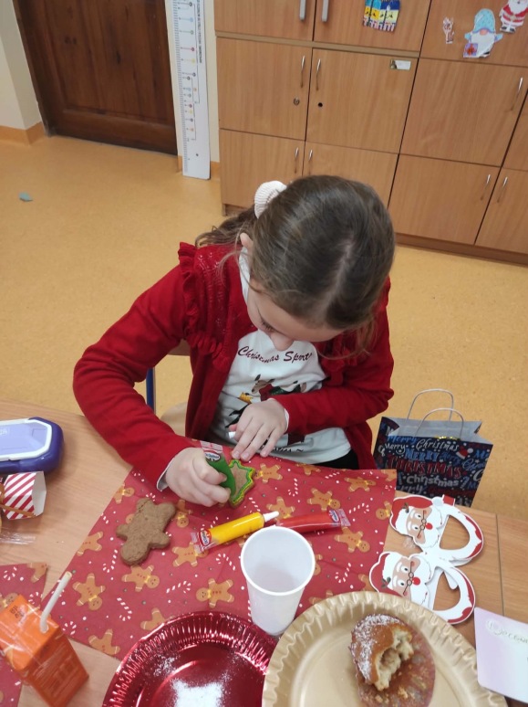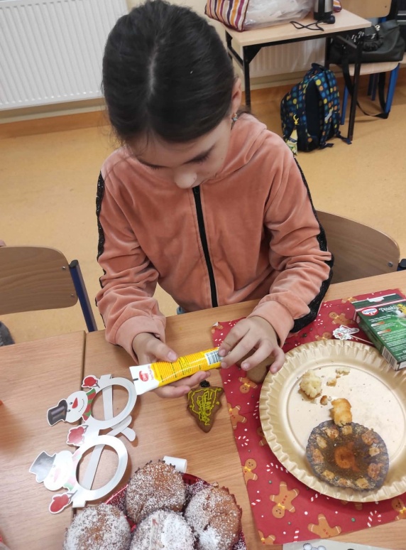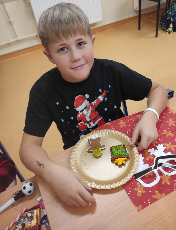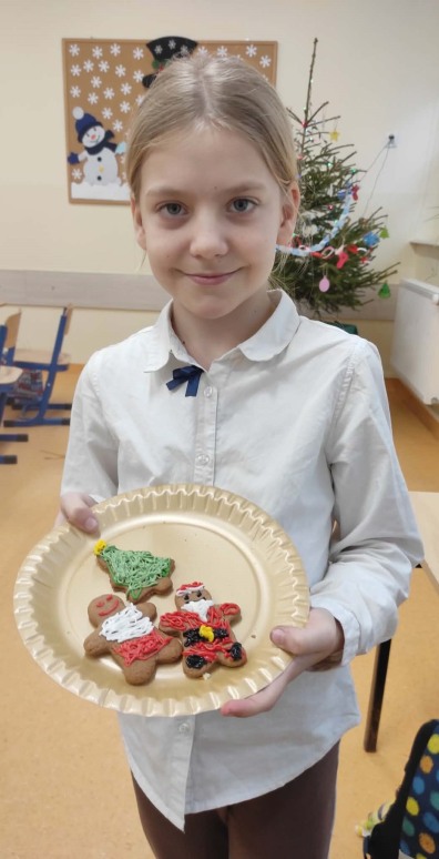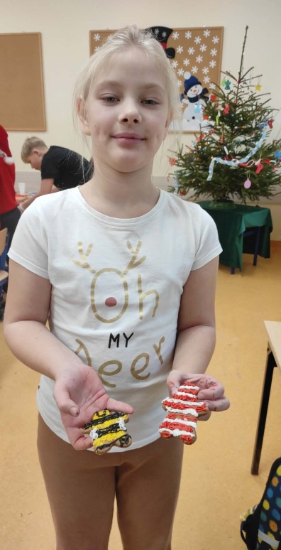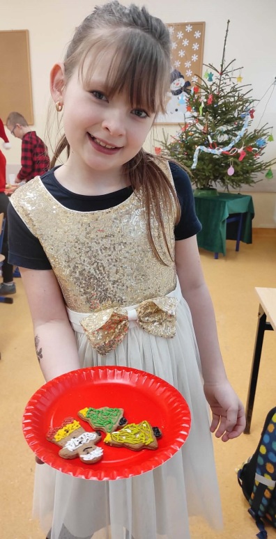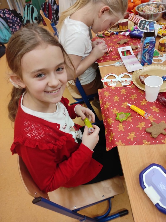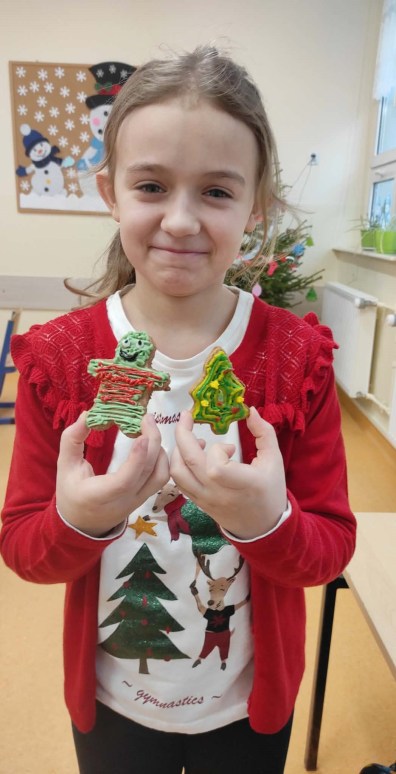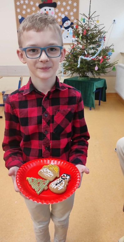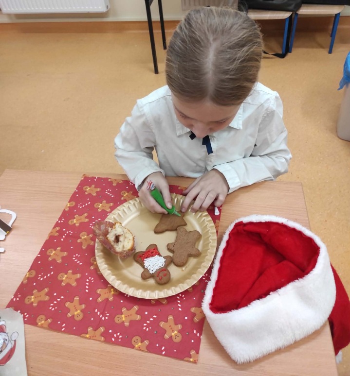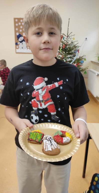 5 grudnia, uczniowie klasy trzeciej wraz z wychowawcą postanowili uczcić Mikołajki w wyjątkowy sposób – poprzez zdobienie pierników. Atmosfera w klasie była pełna radości i świątecznego nastroju. Rodzice przynieśli własnoręcznie upieczone pierniki, a na stołach czekały na uczniów kolorowe posypki, lukier i inne dekoracje, które miały uczynić ich prace jeszcze piękniejszymi. Uczniowie zaangażowali się w zdobienie pierników z entuzjazmem, wymieniając pomysły na ciekawe ozdoby. W trakcie zdobienia nie zabrakło śpiewania. Trzeciaki pełni radości, śpiewali piosenki o św. Mikołaju oraz pastorałki, tworząc tym samym świąteczną atmosferę. Zdobienie pierników okazało się nie tylko twórczym wyzwaniem, ale także świetną okazją do integracji i wspólnego spędzenia czasu w duchu świąt. To wyjątkowe wydarzenie z pewnością na długo pozostanie w pamięci uczniów.