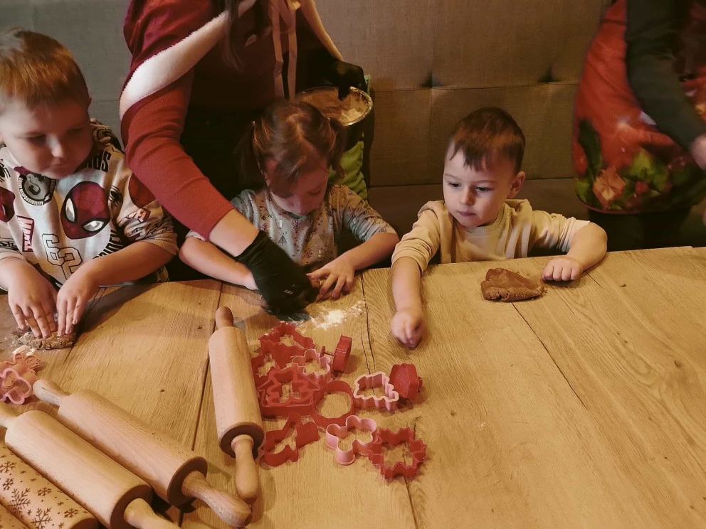 W dniu 2.12 przedszkolaki z oddziału 3 i 4 latków wybrały się do restauracji COBA na warsztaty kulinarne. Przed przystąpieniem do pracy wspólnie obejrzeliśmy bajkę o tematyce świątecznej. Wszystkie dzieci z wielkim zaangażowaniem ugniatały, wałkowały, wycinały i dekorowały pierniczki. Następnie napisały listy do Świętego Mikołaja i włożyły je do skrzynki, po które przybył Święty Mikołaj we własnej osobie. Na zakończenie na maluszków czekała niespodzianka – ŚWIĘTY MIKOŁAJ OSOBIŚCIE PRZYSZEDŁ ODEBRAĆ LISTY.