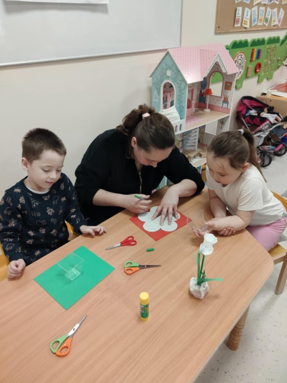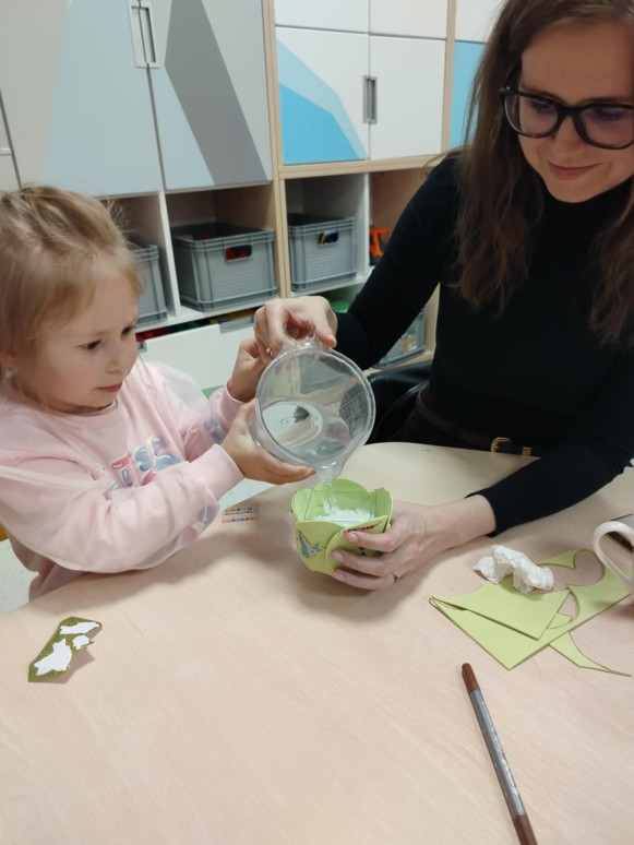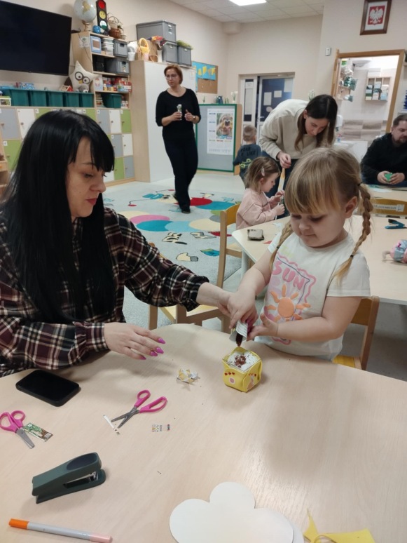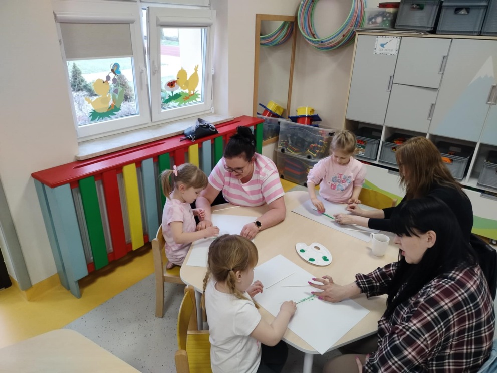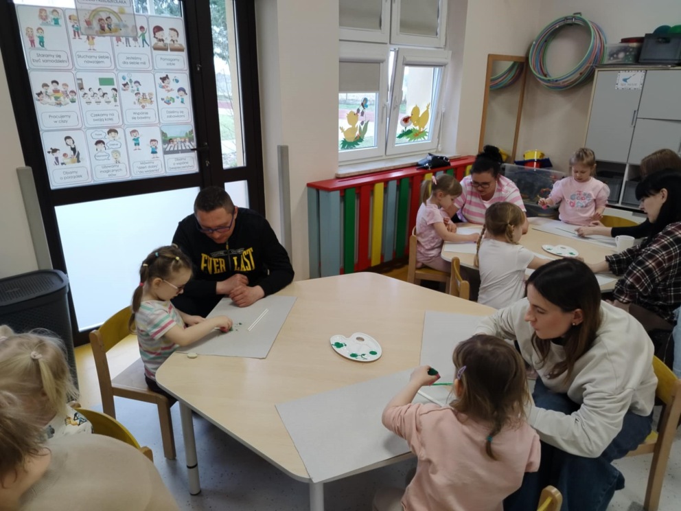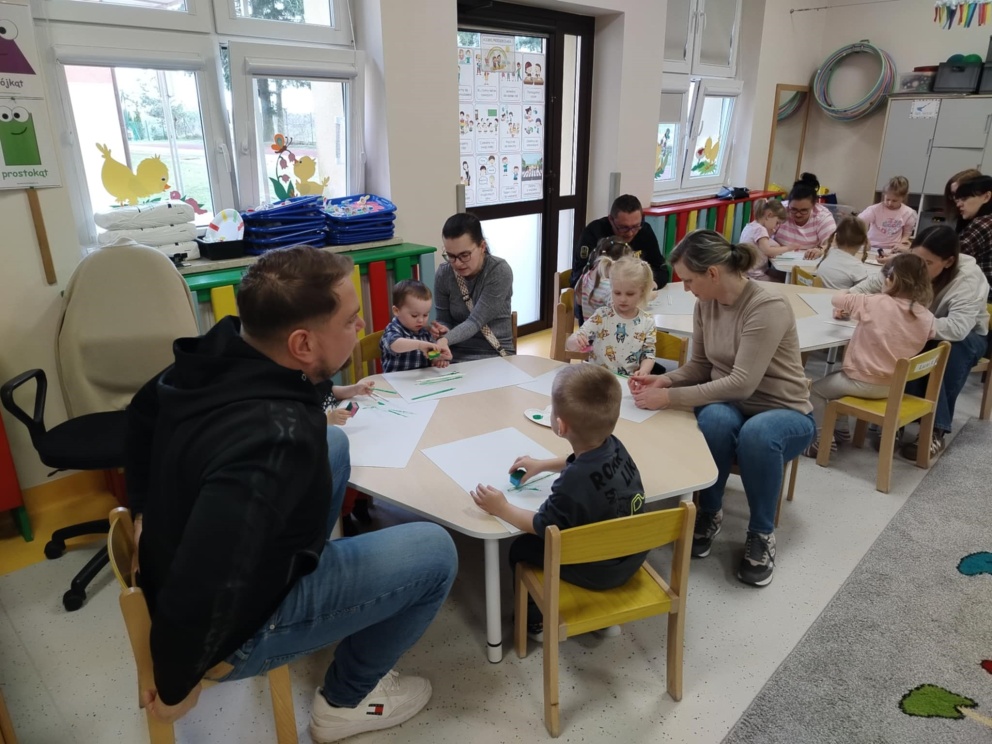 W dniu 26 marca w 10-godzinnym oddziale przedszkolnym odbyły się warsztaty wiosenno-wielkanocne z udziałem dzieci oraz ich rodziców. Spotkanie było doskonałą okazją do wspólnej zabawy i integracji. Podczas warsztatów przedszkolaki zaprezentowały swoje umiejętności przyrodnicze, matematyczne i polonistyczne, a także aktywnie uczestniczyły w zabawach ruchowych. Dzieci wraz z rodzicami wykonały wiosenne przebiśniegi, przygotowały osłonki na doniczki oraz wspólnie posiały rzeżuchę. Nie zabrakło radości, śmiechu i dobrej zabawy. Na zakończenie spotkania dzieci razem z rodzicami zatańczyły oraz zaśpiewały piosenkę, tworząc miłe i pełne wiosennej atmosfery wspomnienia.